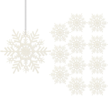 Zawieszki na choinkę śnieżynki 12 szt. ozdoba świąteczna 10,5 cm biały brokat