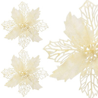 Gwiazda betlejemska 2 szt. sztuczny kwiat, poinsecja kremowo-złota z brokatem na klipsie