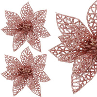 Gwiazda betlejemska 2 szt. sztuczny kwiat, poinsecja ażurowa, różowa z brokatem na klipsie