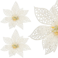 Gwiazda betlejemska 2 szt. sztuczny kwiat, poinsecja ażurowa, biała z brokatem na klipsie