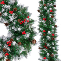 Dekoracyjny łańcuch świąteczny z szyszkami i jarzębiną 110 cm girlanda ośnieżona, zielona