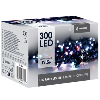 Lampki choinkowe 25,5 m biały ciepły, flash biały zimny 300 led oświetlenie świąteczne IP44