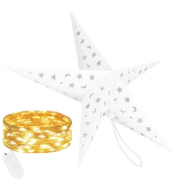 ( ilość produktów: 151 )Gwiazda świąteczna papierowa biała 3D i lampki choinkowe led ciepły biały