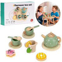 Zestaw śniadaniowy z drewna dla dzieci 14 el. zabawka, kuchenne akcesoria do herbaty