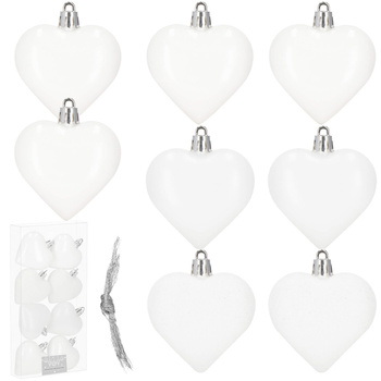 Bombki choinkowe 7 cm dekoracje świąteczne 8 szt. nietłukące serca, białe