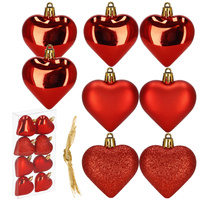 Bombki choinkowe 7 cm dekoracje świąteczne 8 szt. nietłukące serca, czerwone