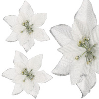 Gwiazda betlejemska, sztuczny kwiat, poinsecja ażurowa, biała z brokatem na klipsie