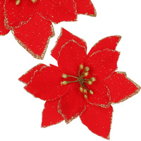 Gwiazda betlejemska, sztuczny kwiat, poinsecja czerwono-złota z brokatem na klipsie
