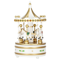 Drewniana karuzela, pozytywka ozdoba świąteczna biało-złota