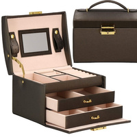 Kuferek, szkatułka na biżuterię 17,5x14x12,5 cm brązowy z szufladami i lusterkiem