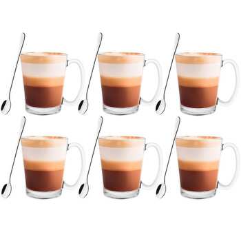 Szklanki do kawy latte, deserów 300 ml z długimi łyżeczkami komplet 6 szt.