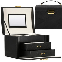 Kuferek, szkatułka na biżuterię 18 x 14 x 13,5 cm czarny z szufladami i lusterkiem