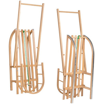 Sanki dla dzieci drewniane z siedziskiem, oparciem i pchaczem