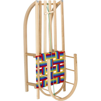 Sanki dla dzieci drewniane z oparciem i czarnym materacykiem
