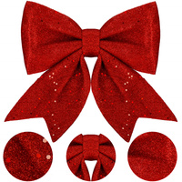 Kokardka świąteczna na choinkę 20 cm brokatowa zawieszka choinkowa czerwona