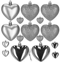 Bombki choinkowe 16 szt. komplet dekoracje świąteczne, nietłukące serca, srebrne