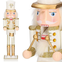 Dziadek do orzechów 38 cm z berłem, drewniany żołnierzyk złoty, figurka świąteczna