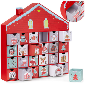 ( ilość produktów: 1085 )Kalendarz adwentowy, świąteczny 24 szufladki do uzupełnienia, domek, multikolor