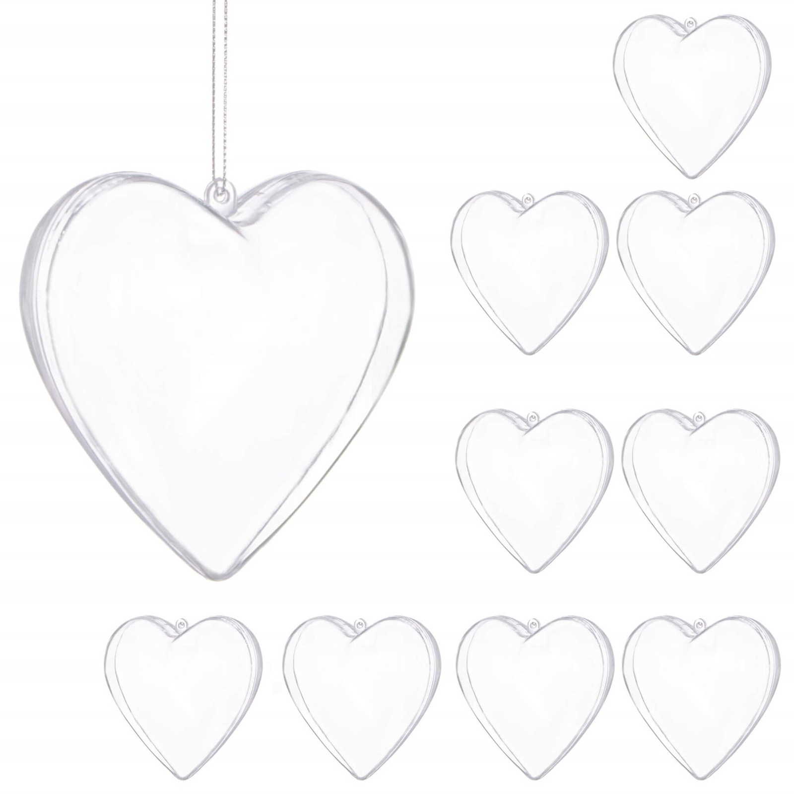 Bombki akrylowe 8cm serce plastikowe decoupage zestaw 10 szt.