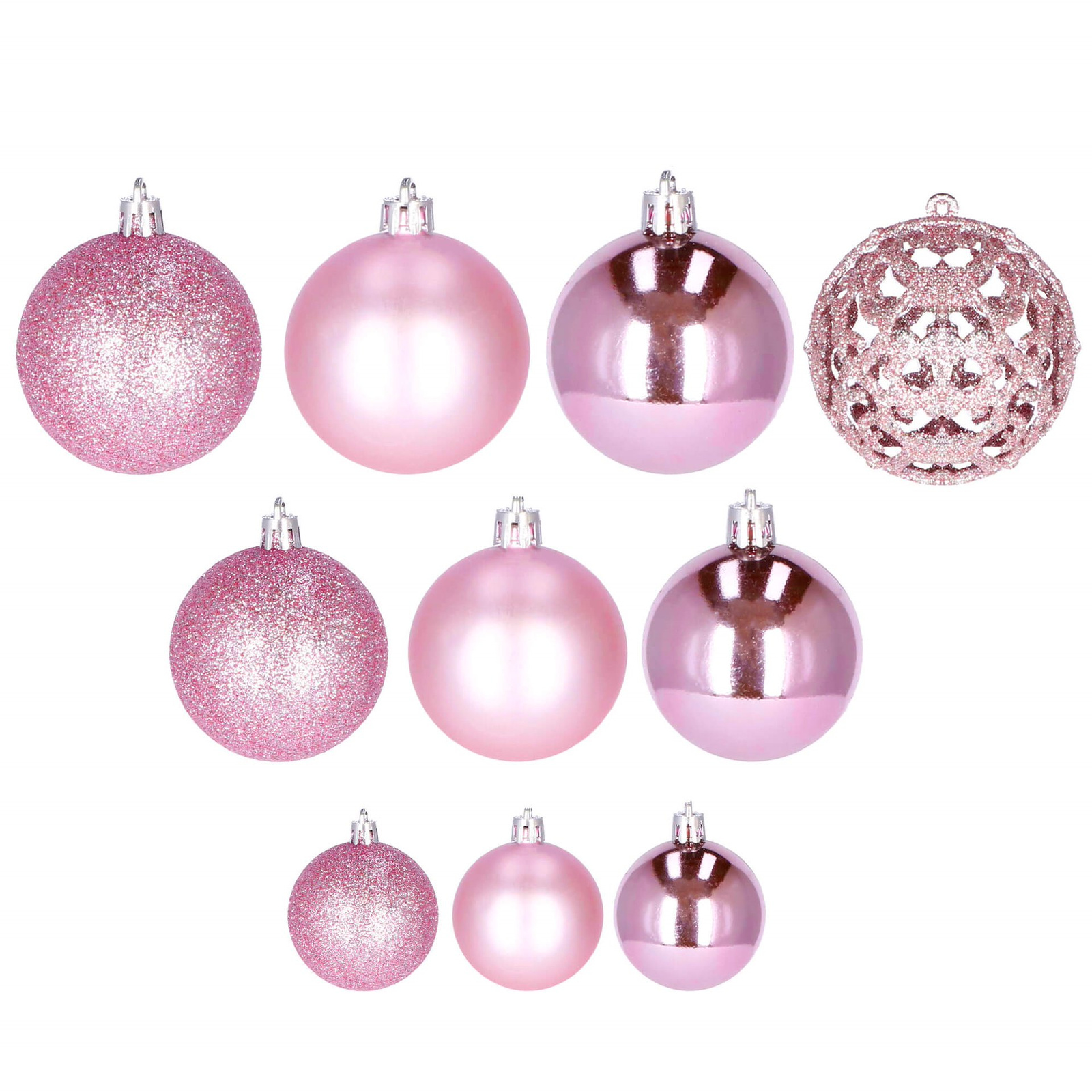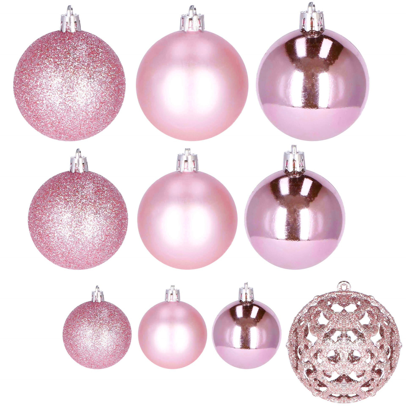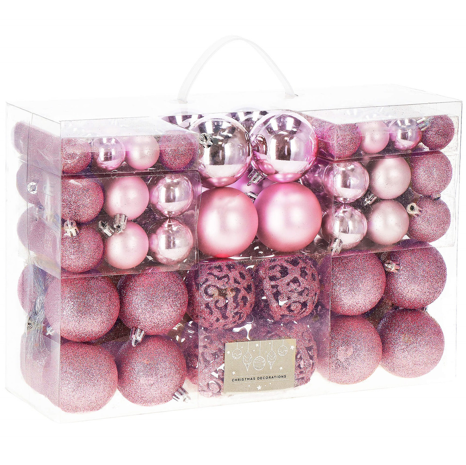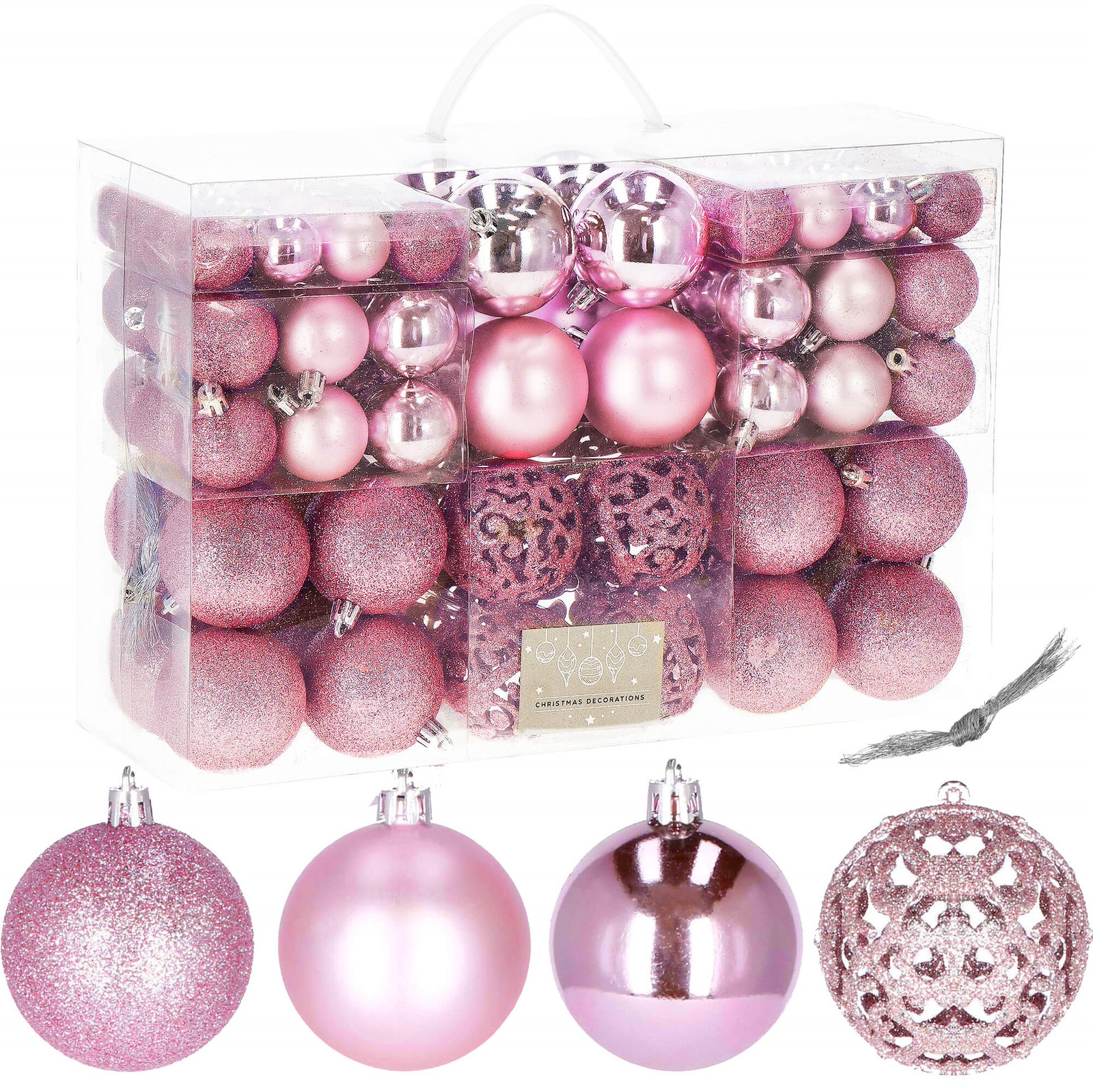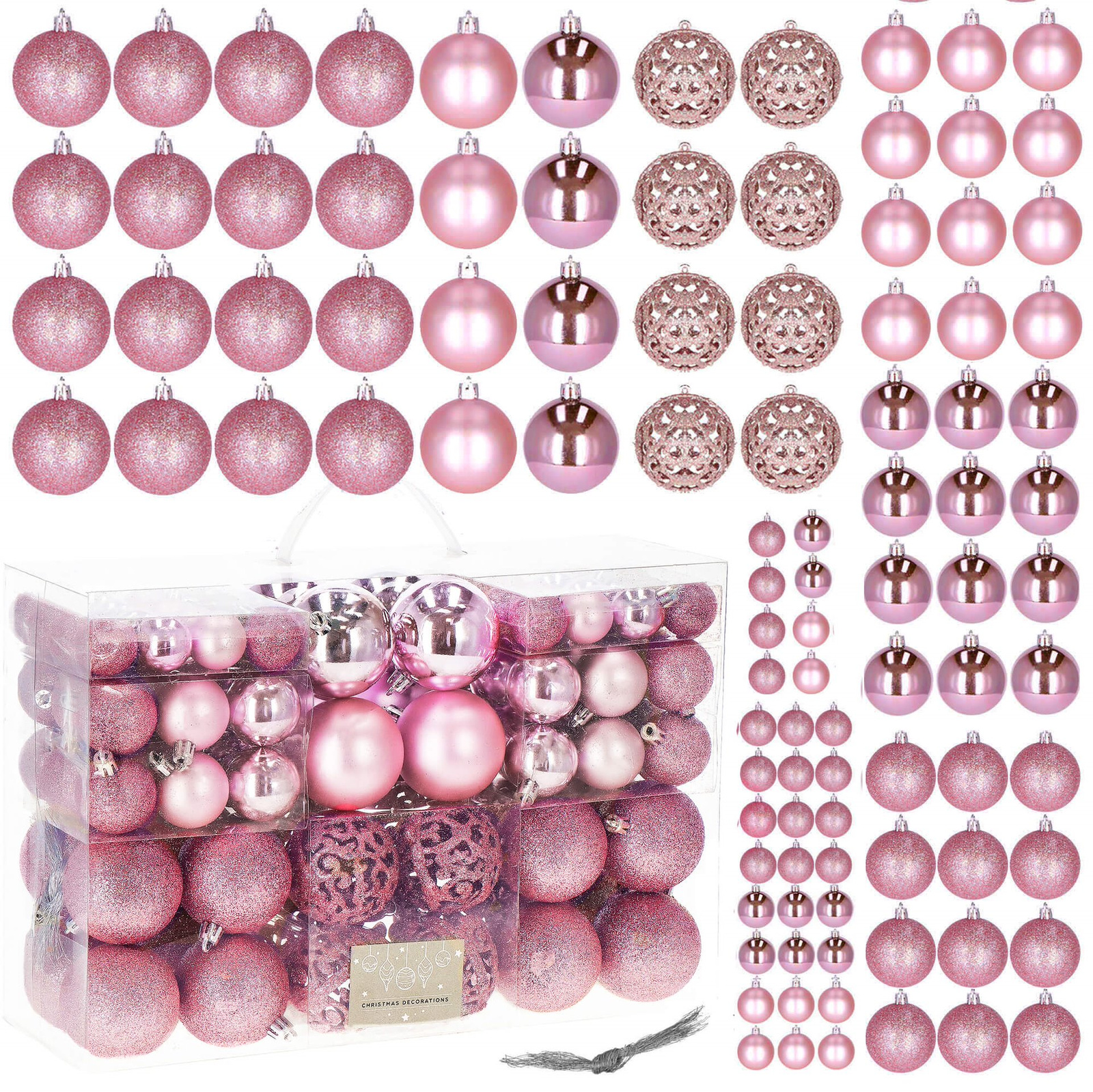 Bombki choinkowe 100 szt. ozdoby świąteczne zestaw różne rozmiary różowe