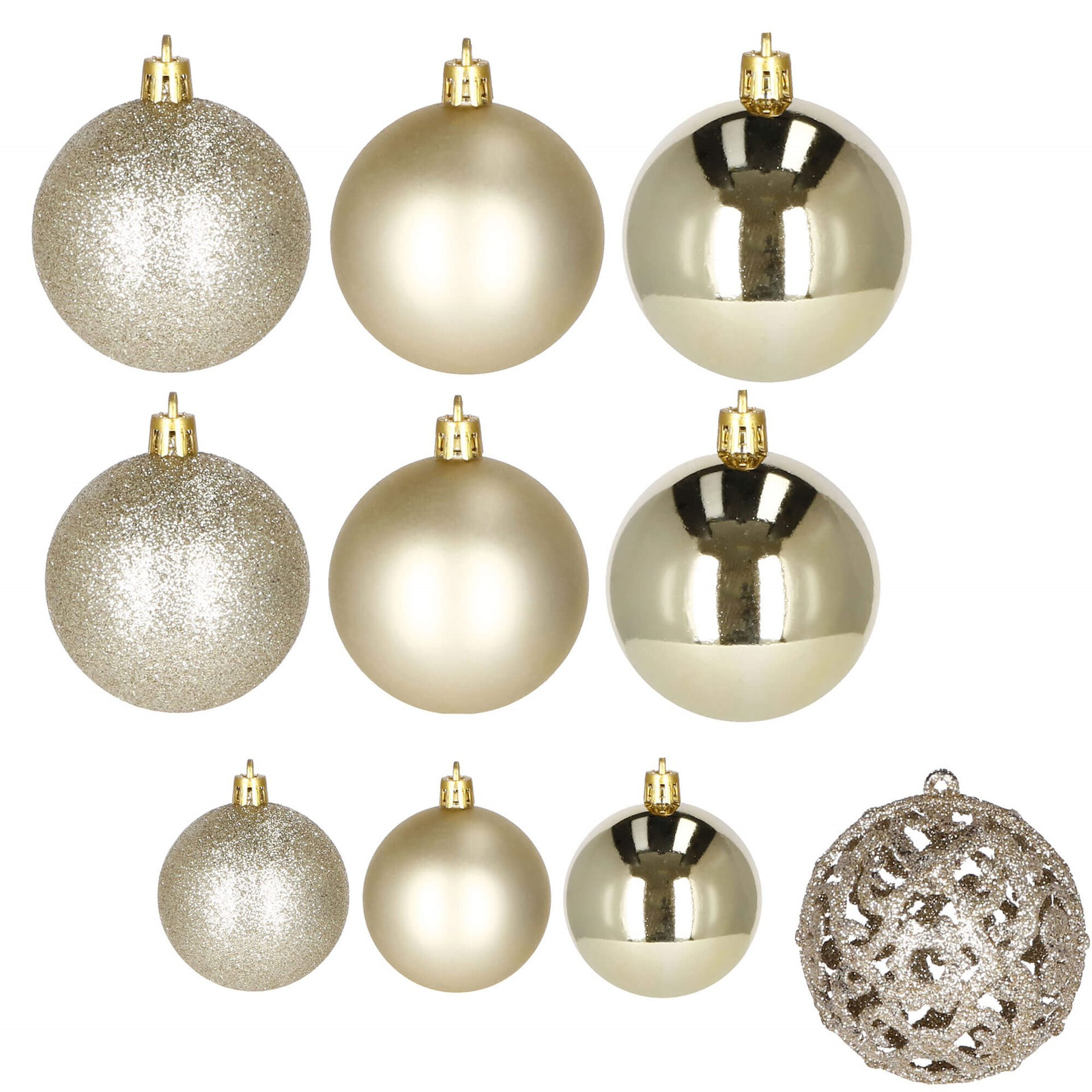 Bombki choinkowe to nieodłączny element wystroju choinki, dzięki któremu bożonarodzeniowe drzewka błyszczą się i mienią w świetle świątecznych lampek. Z naszym zestawem złotych bombek choinkowych stworzysz jedyne w swoim rodzaju dekoracje i nadasz wnętrzom niepowtarzalnego klimatu bożonarodzeniowego. W komplecie otrzymujesz bombki o rozmaitych kształtach i zdobieniach: brokatowych, matowych, błyszczących i ażurowych, idealnie nadające się do przyozdabiania choinki oraz tworzenia świątecznych stroików i girland. Wszystko to zapakowane w poręcznym pudełku z uchwytem. Nietłukące się bombki to najlepszy wybór dla osób mieszkających z małymi dziećmi i zwierzętami, którym należy zapewnić maksymalne bezpieczeństwo. Ozdoby z tworzywa sztucznego nie pękają po przypadkowym upuszczeniu lub spadnięciu z gałązki drzewka, dlatego do strojenia choinki mogą przyłączyć się także dzieci. Niespodziewane przewrócenie choinki z nietłukącymi się bombkami również nie będzie stanowić problemu, gdyż żadna zawieszka nie ulegnie zniszczeniu. Stwórz magiczny klimat wraz z pięknymi ozdobami świątecznymi naszej marki!