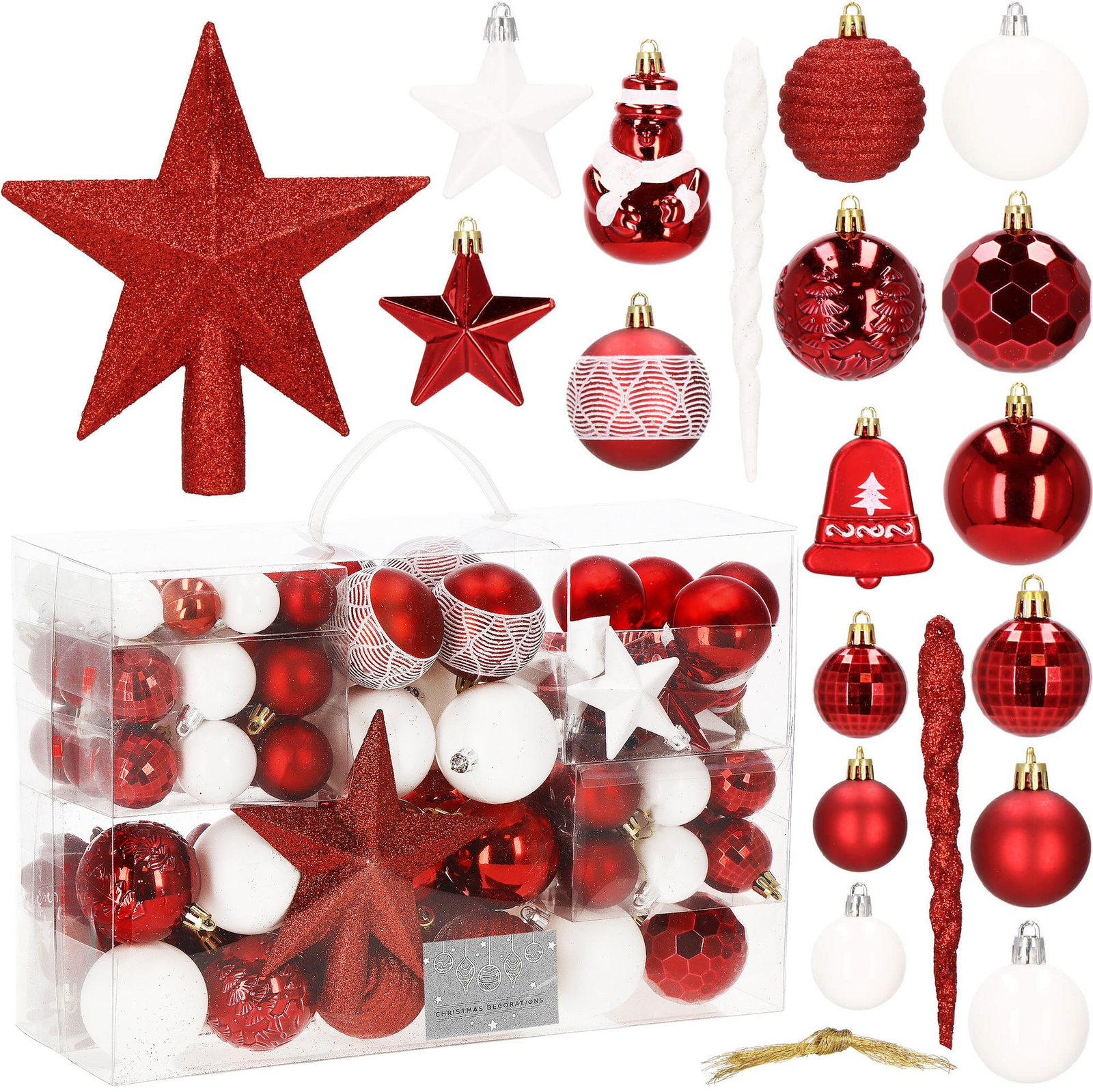 Opinie o Bombki choinkowe 105 szt. ozdoby świąteczne zestaw biały, czerwony