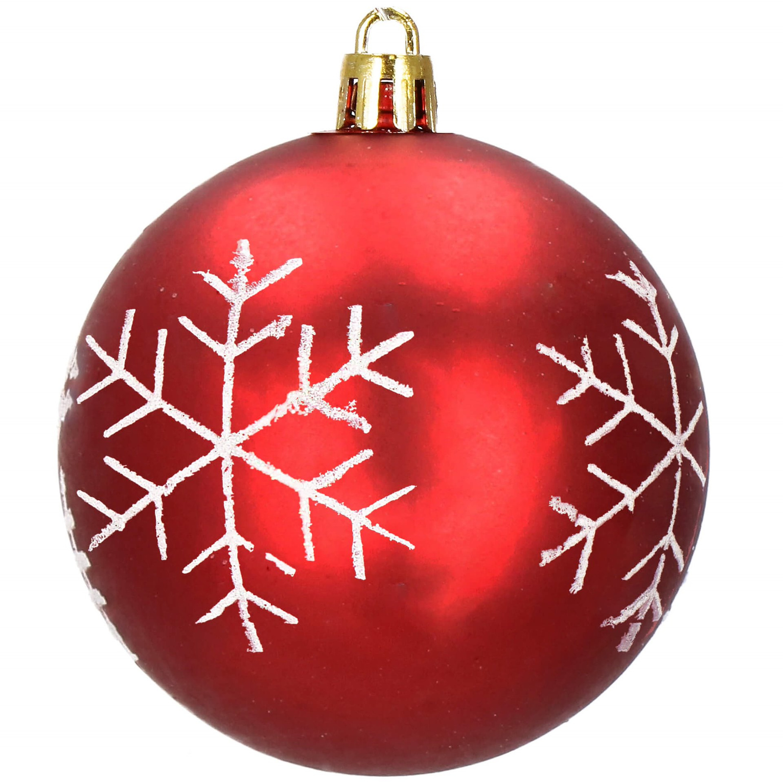 • 2 x bombka czerwona półmatowa z białymi śnieżynkami