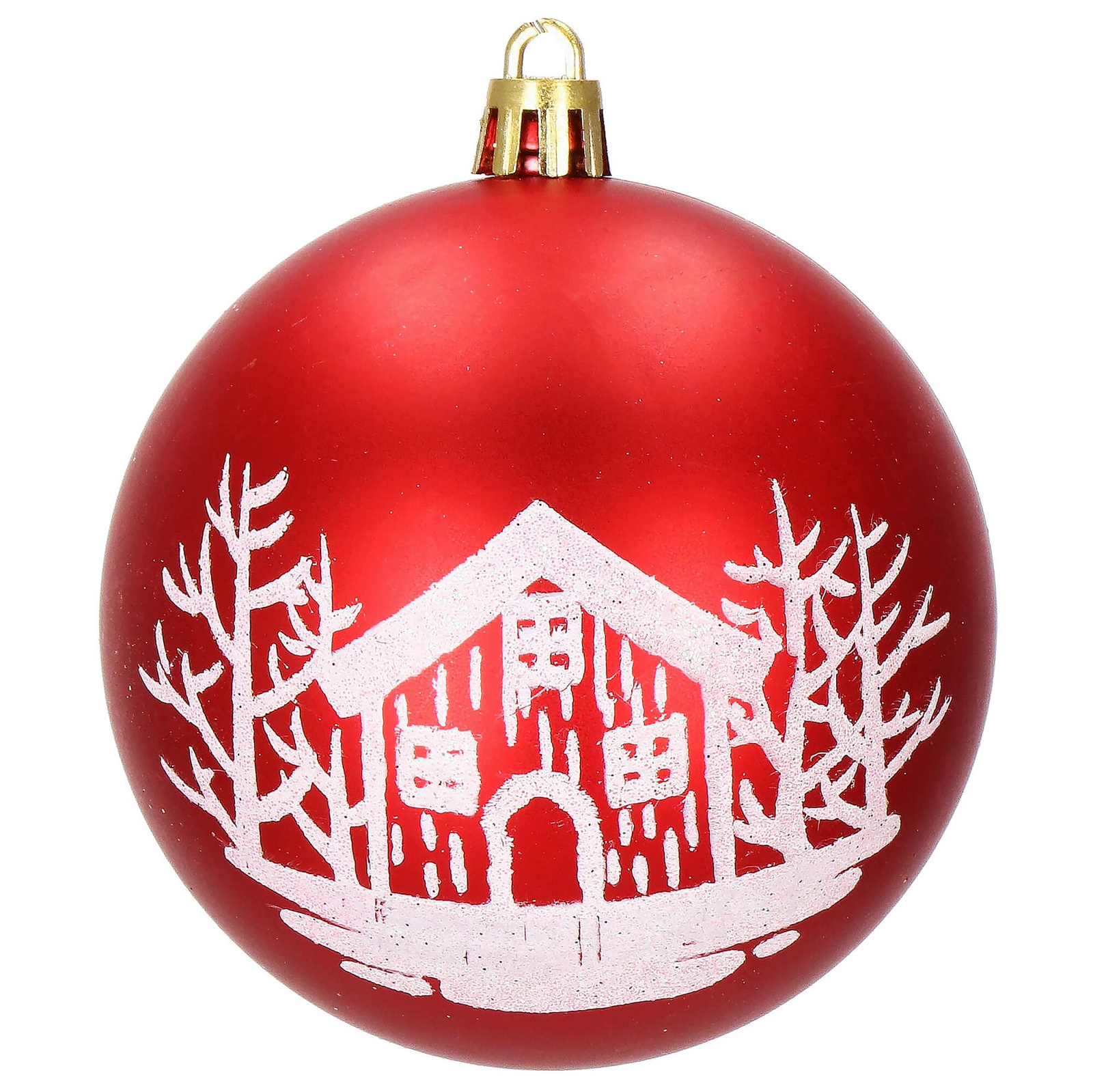 • 3 x bombka czerwona półmatowa z białym wzorem "domek"