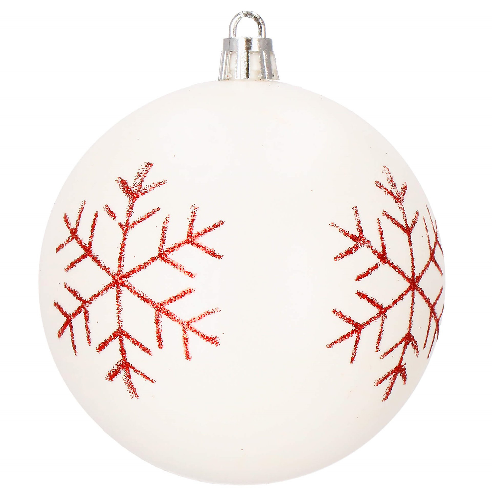 • 2 x bombka biała półmatowa z czerwonymi śnieżynkami