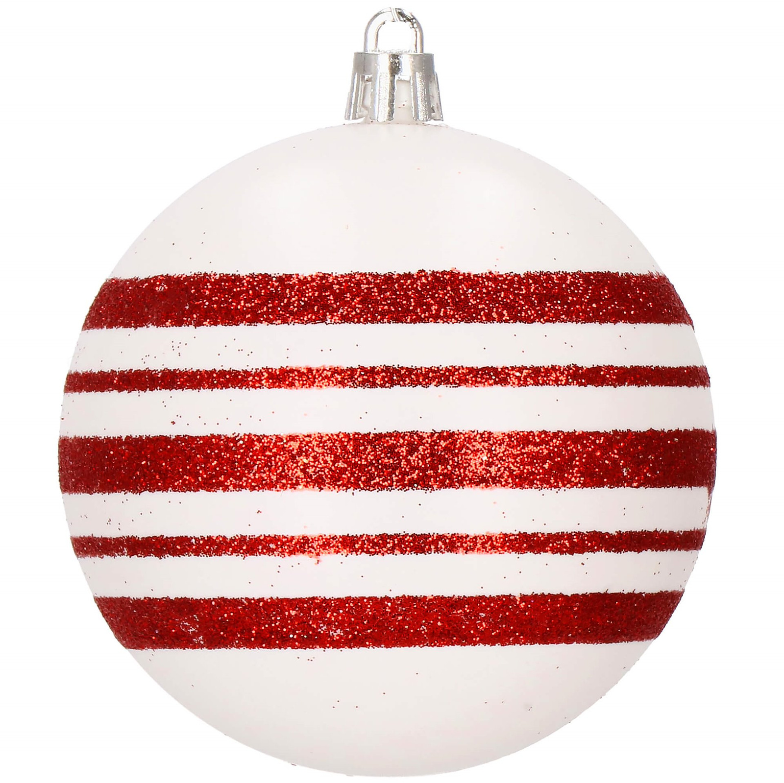 • 1 x bombka biała półmatowa z czerwonymi paskami
