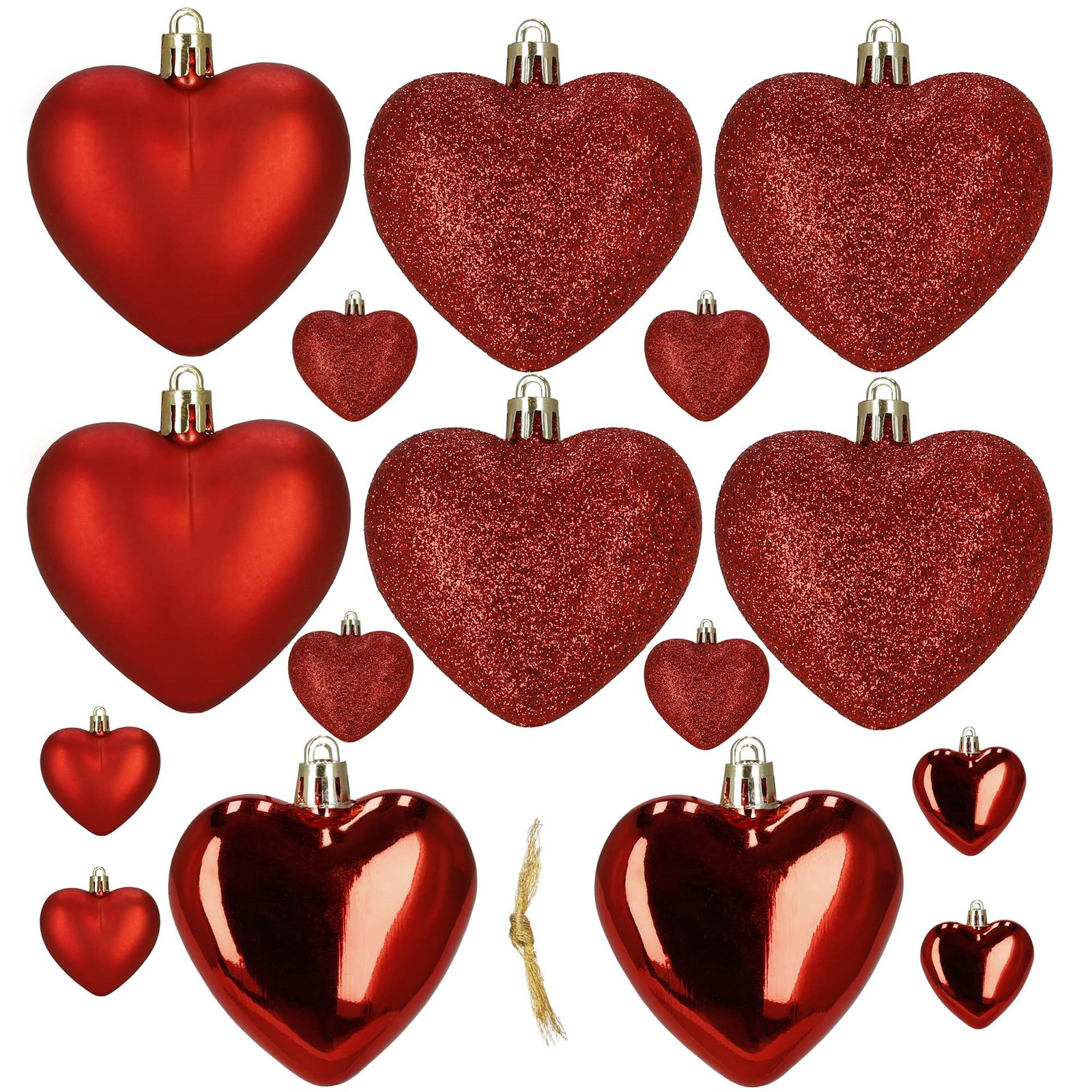 Bombki choinkowe 16 szt. komplet dekoracje świąteczne, nietłukące serca, czerwone