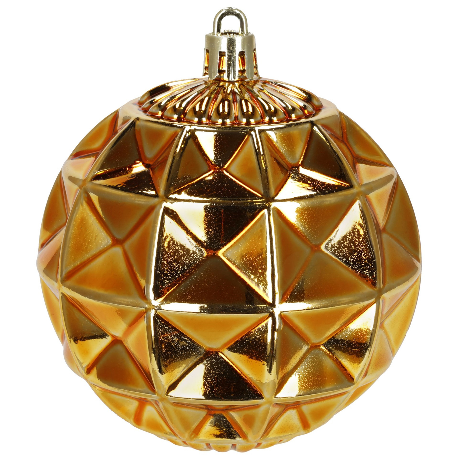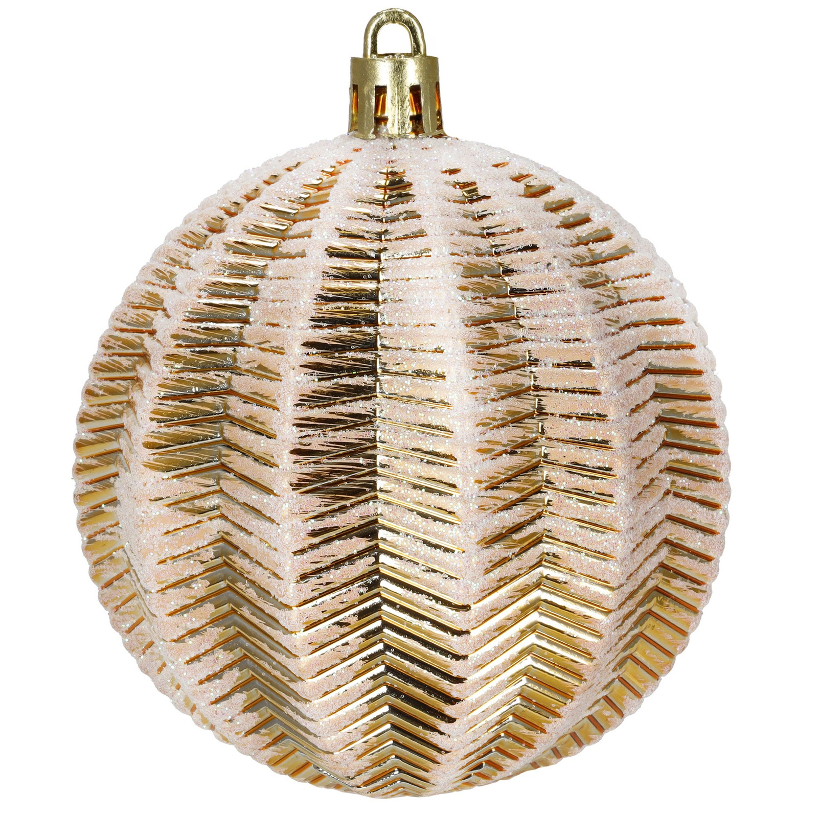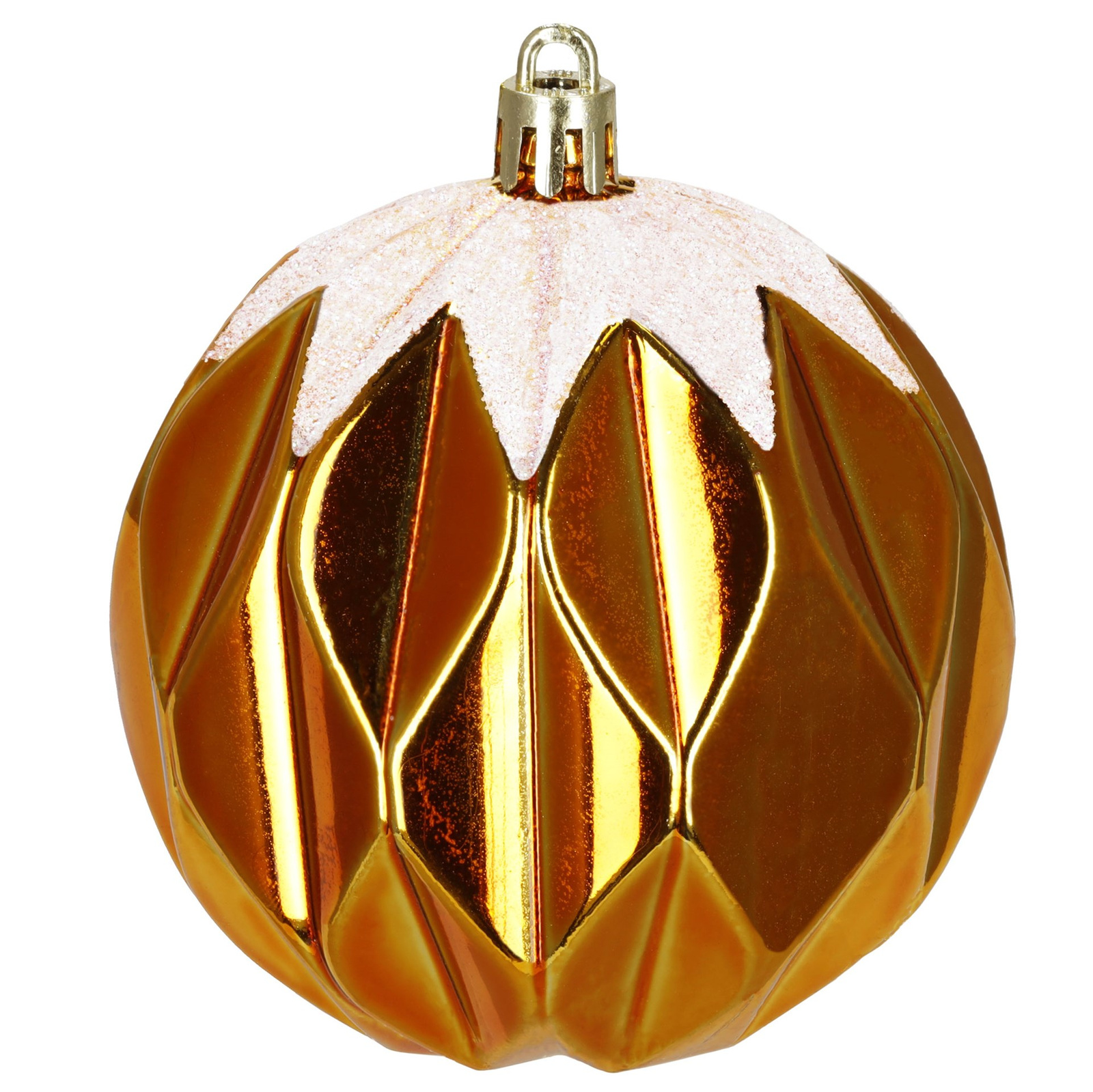 - 4x bombka połysk złota wytłaczana z brokatowym zdobieniem - 8 cm