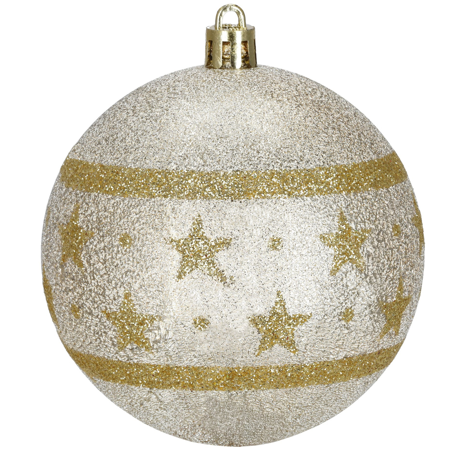 - 2x bombka mat złota z brokatowym wzorkiem w gwiazdki 8 cm