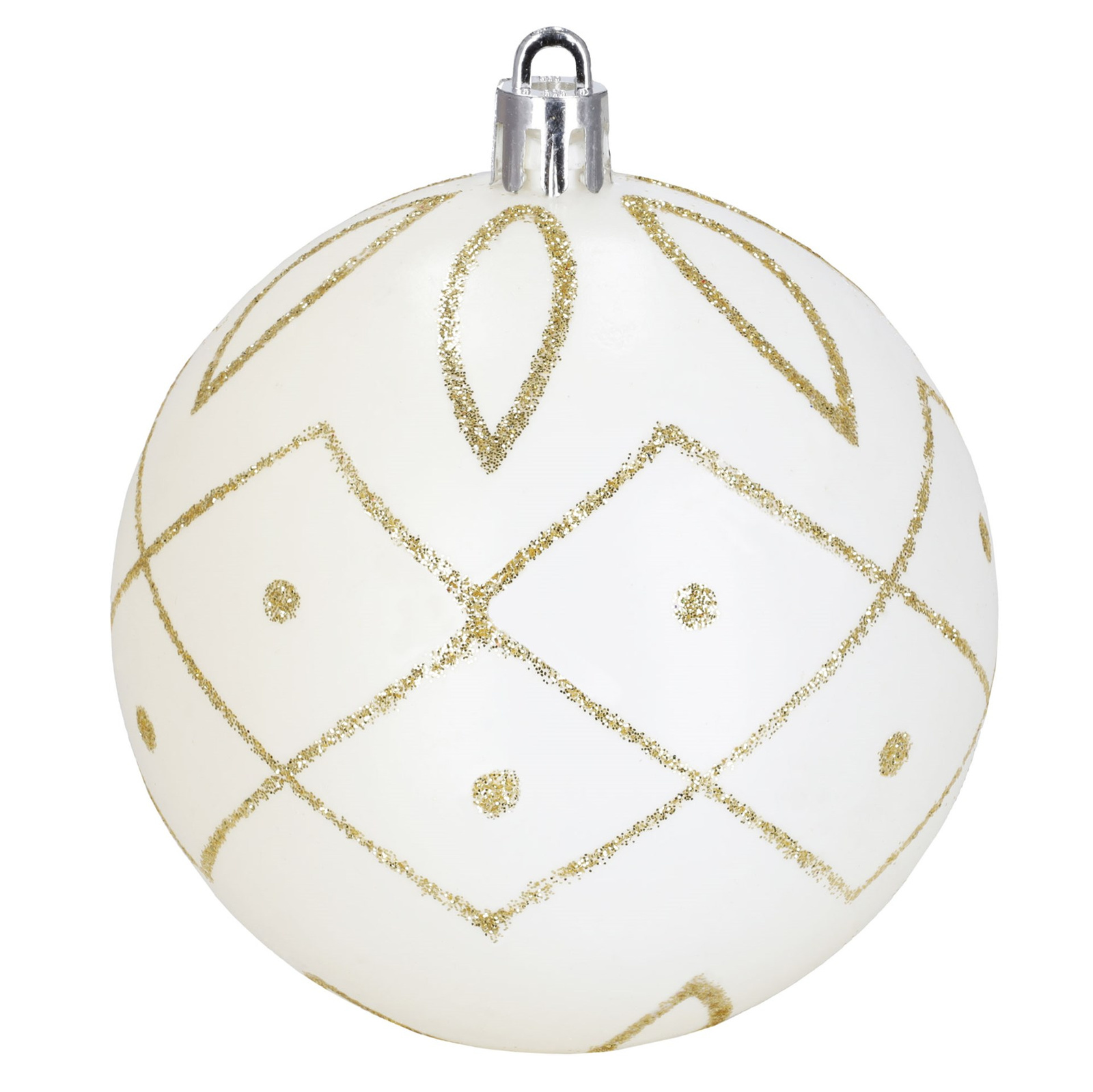 - 2x bombka mat biała z brokatowym wzorkiem - 8 cm