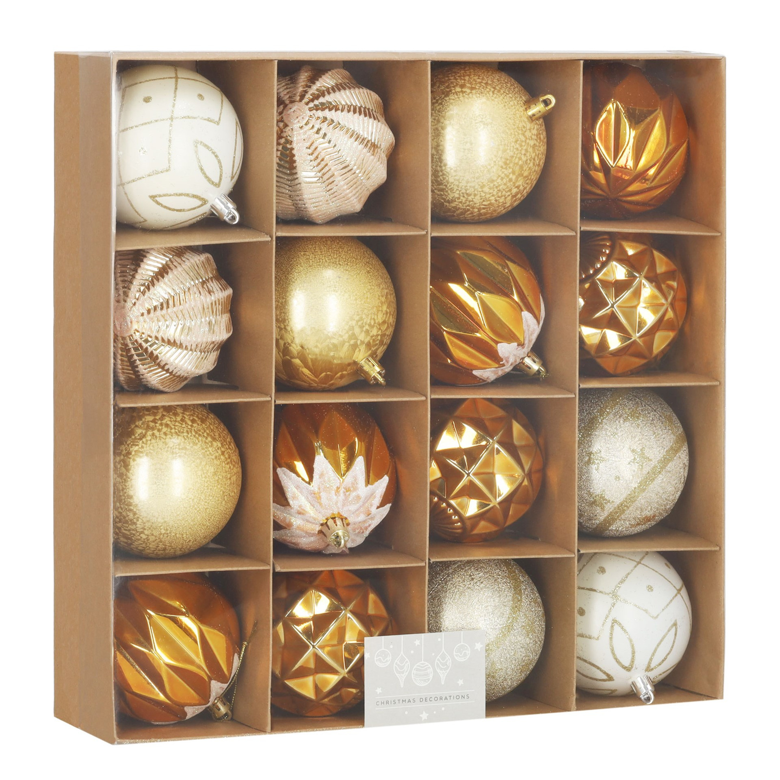 Bombki choinkowe 16 szt. ozdoby świąteczne zestaw 8cm biały, złoty