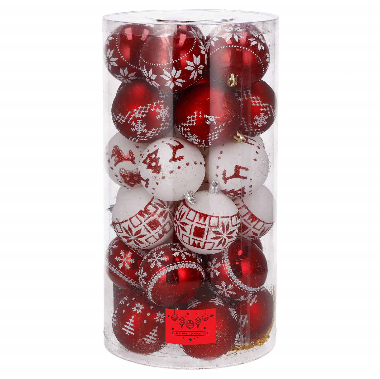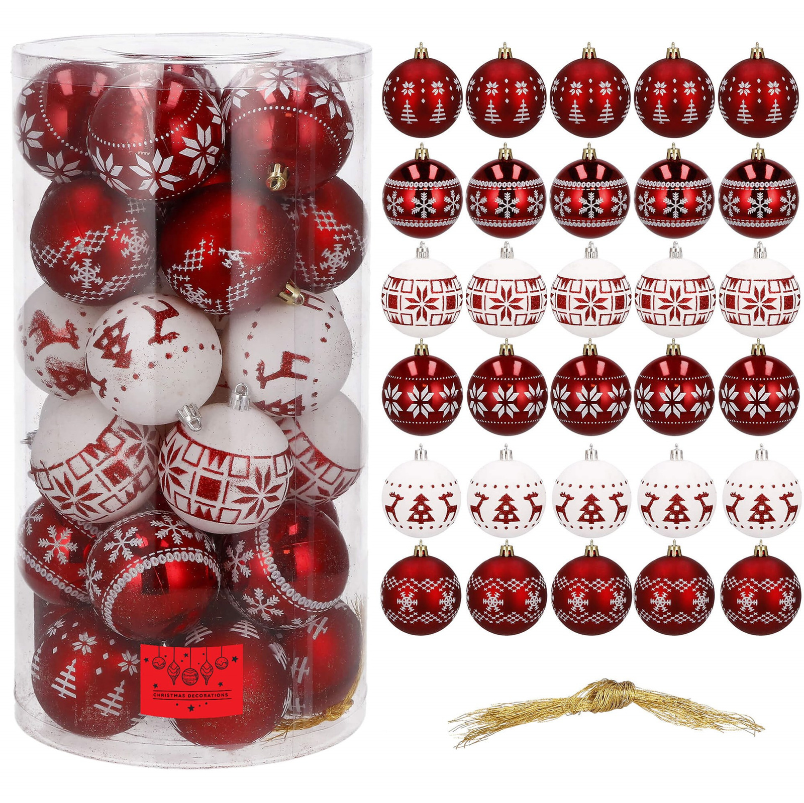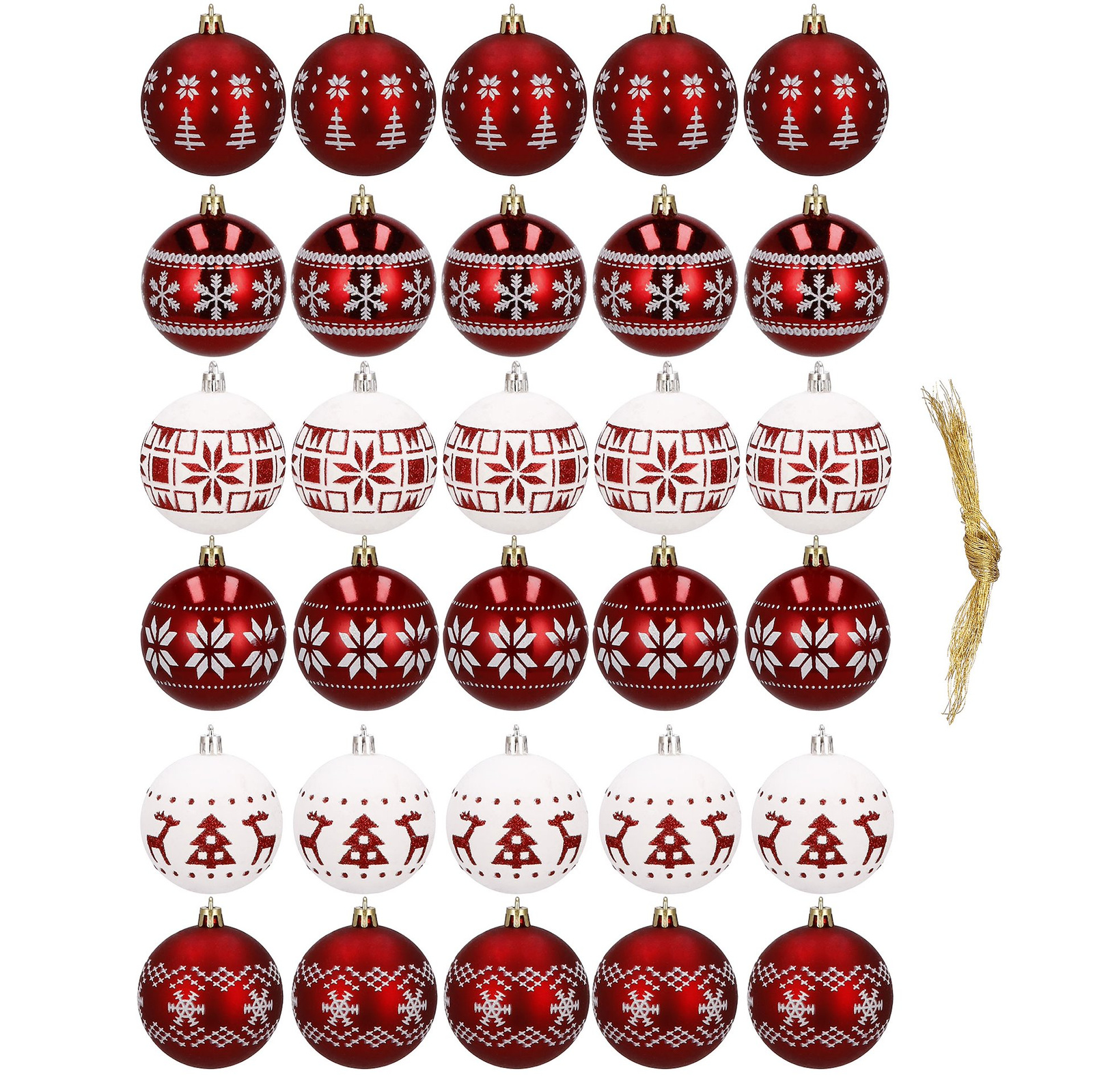 Bombki choinkowe 30 szt. ozdoby świąteczne zestaw 7cm biało-czerwone