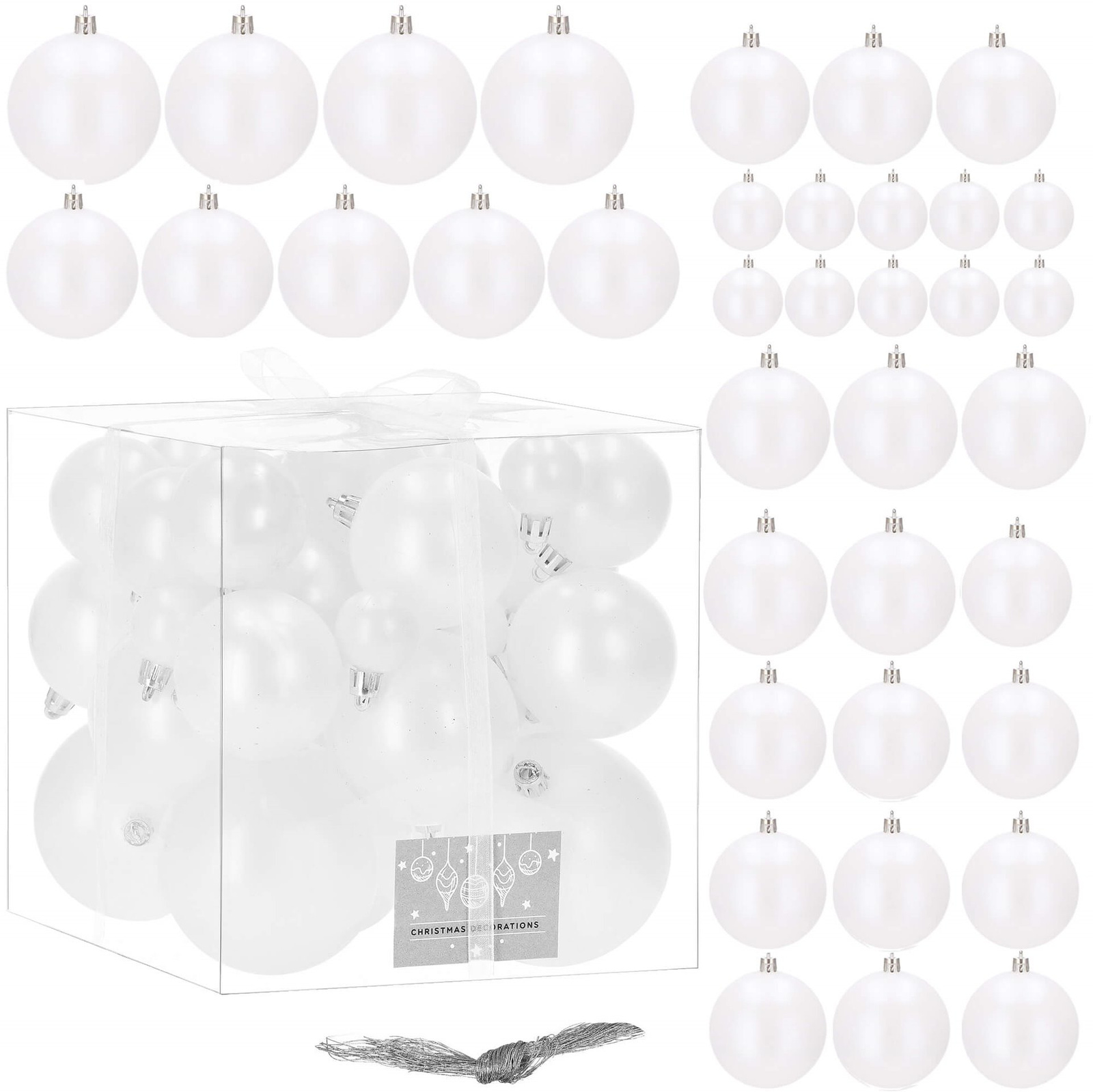 Bombki choinkowe 37 szt. ozdoby świąteczne perłowy biały