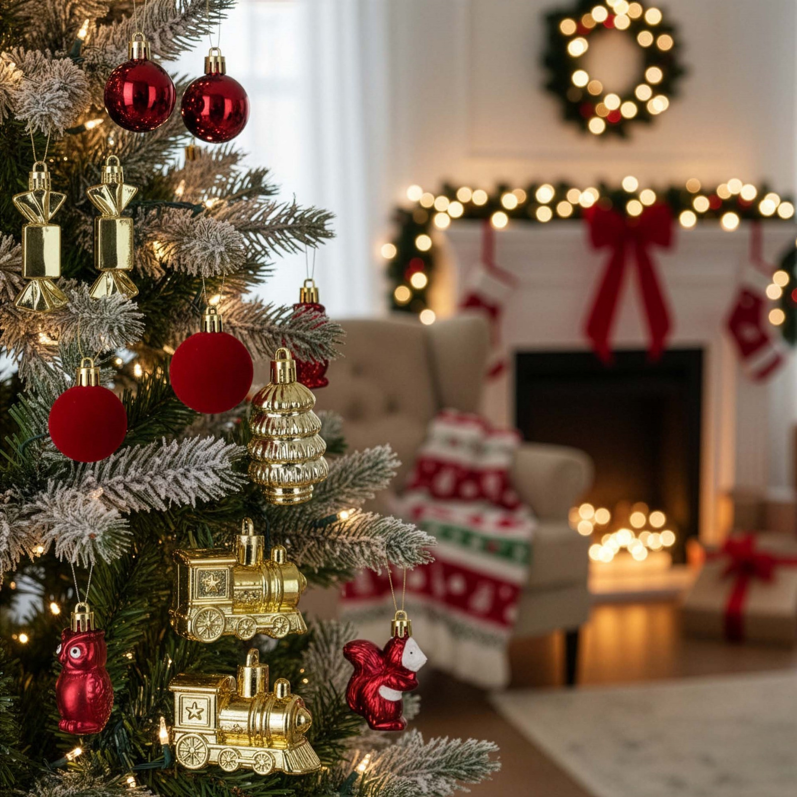 ⭐ Różnorodne kształty – kule, pociąg, cukierek, wiewiórka, sowa i choinka - dodają dekoracji charakteru i wyjątkowości.