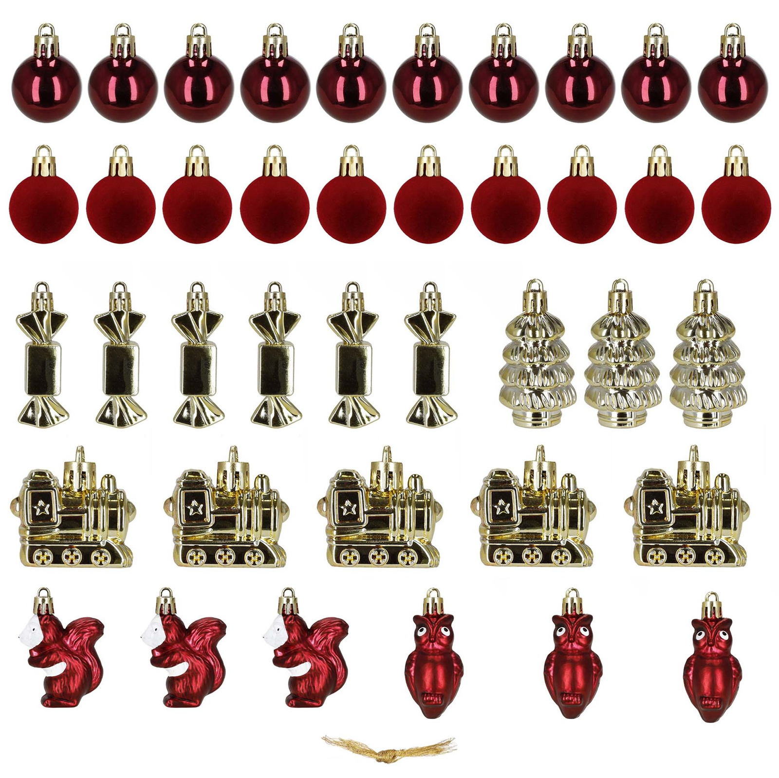 40-elementowy komplet bombek w bordowe, złote i białe - bogactwo kształtów i faktur
