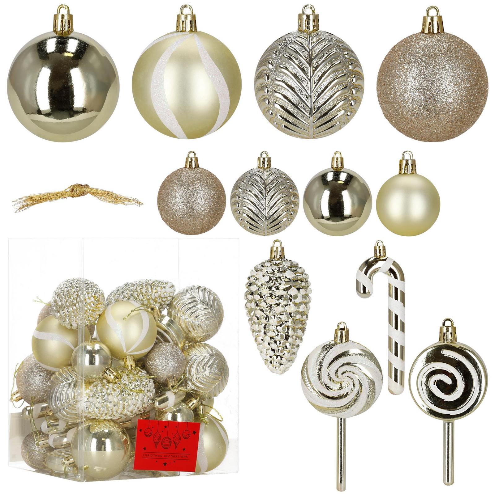Bombki choinkowe 40 szt. okrągłe, lizaki, szyszki, laski cukrowe nietłukące ozdoby złote