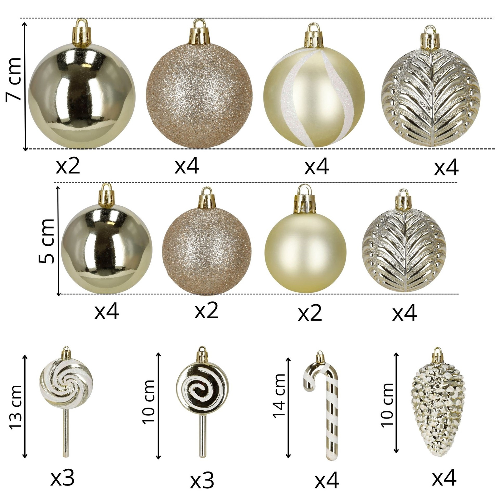 ⭐ Zestaw zawiera 40 bombek, co pozwala na pełne, równomierne udekorowanie choinki.