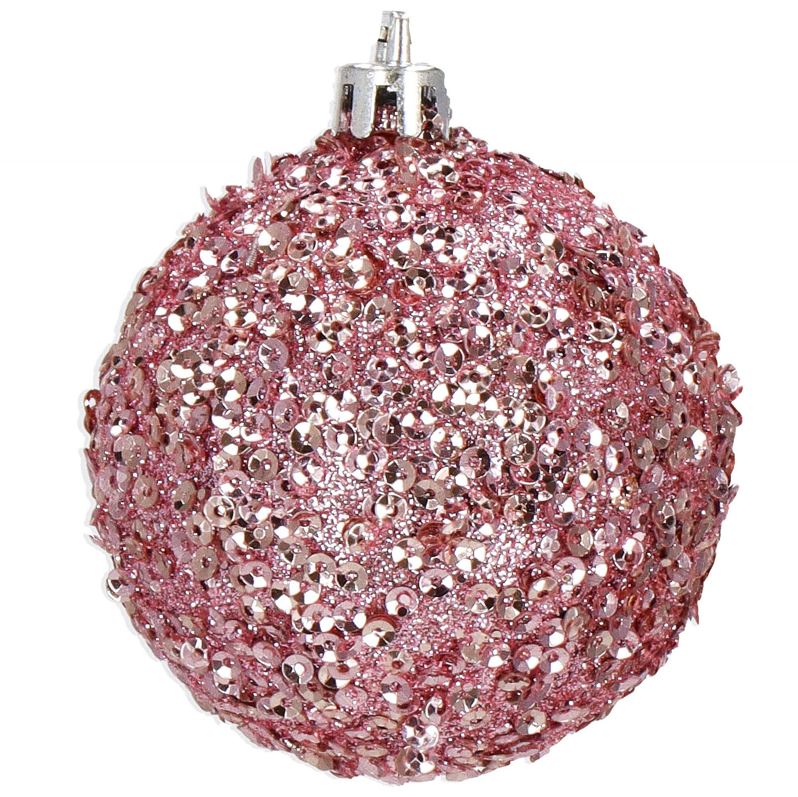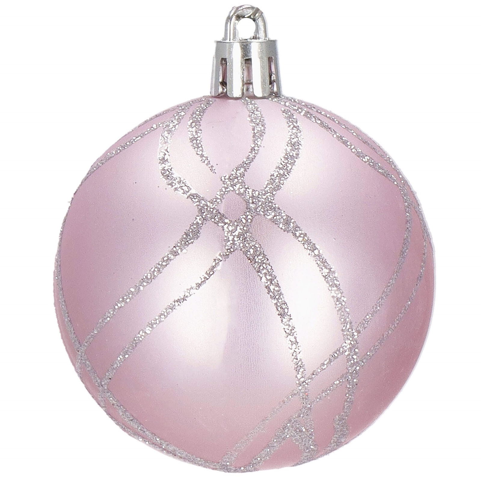 - 2 x matowa bombka różowa z srebrnym brokatem
