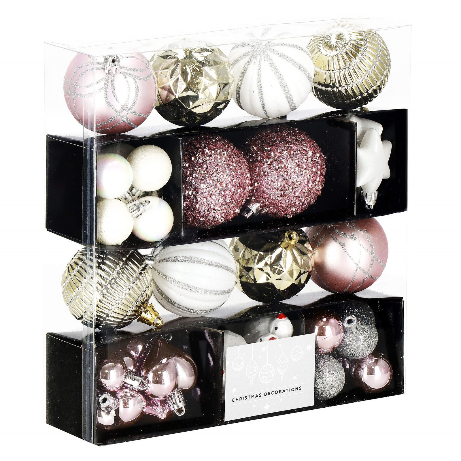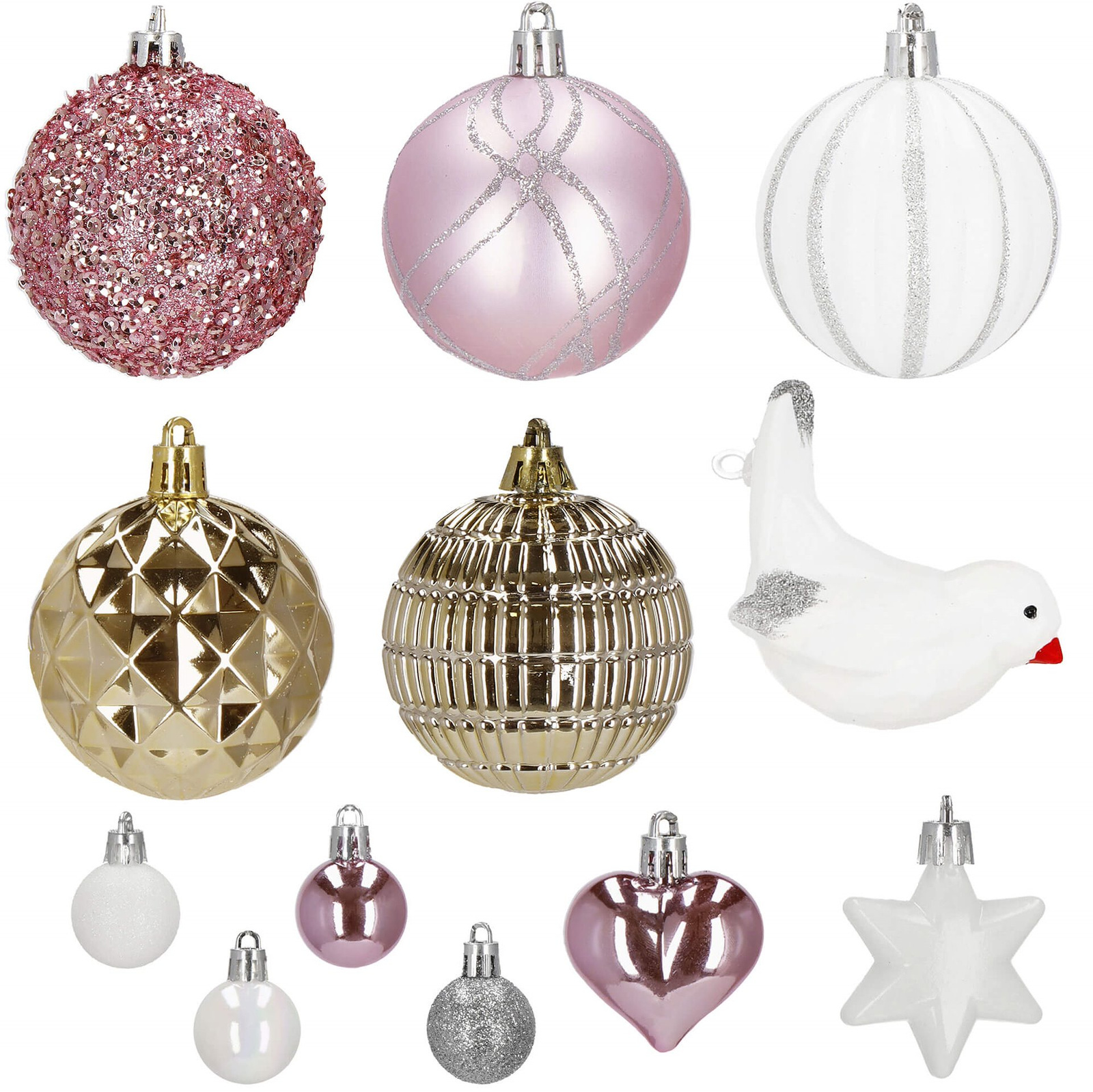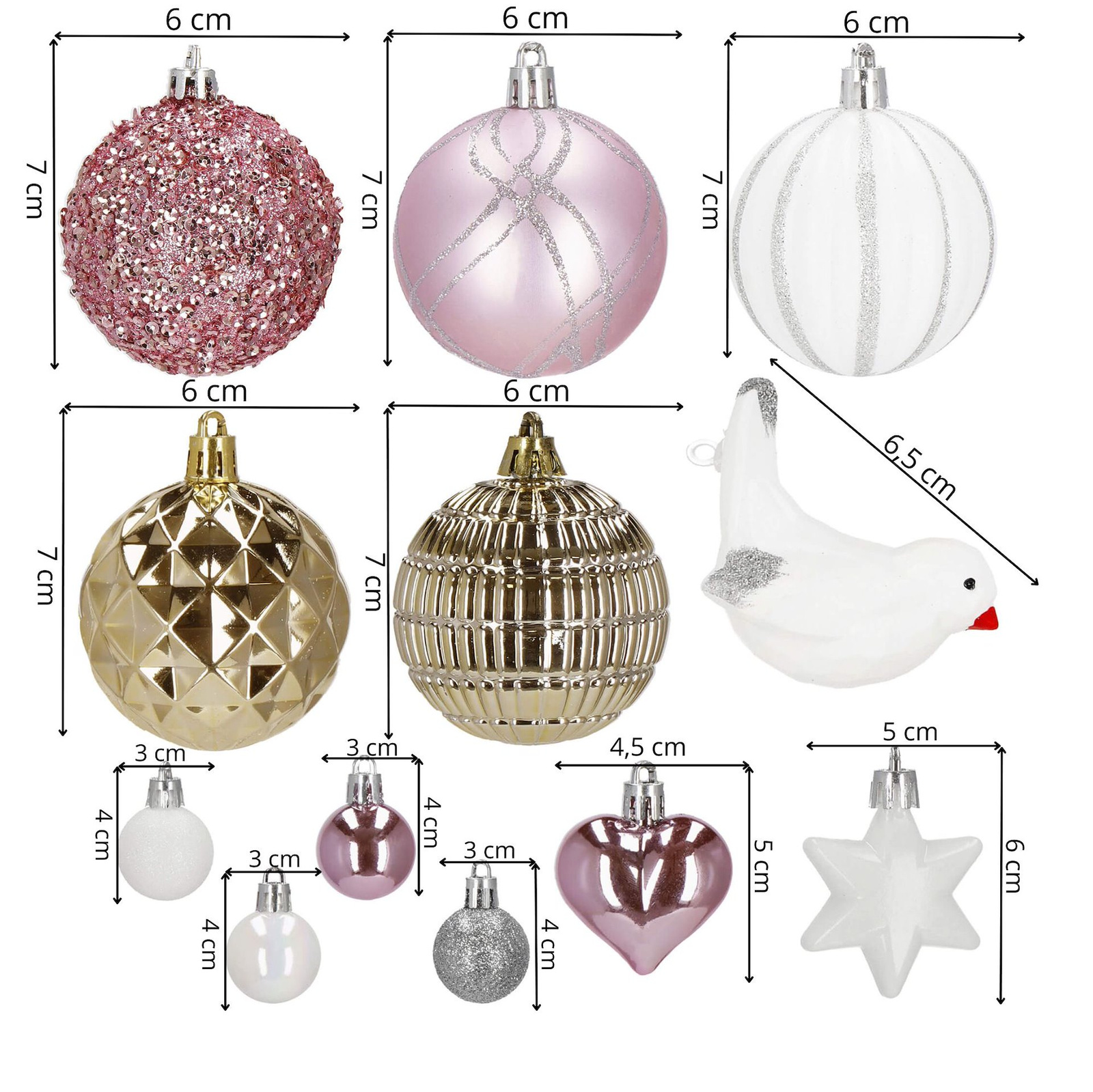 Bombki choinkowe 40 szt. ozdoby świąteczne różowe, białe