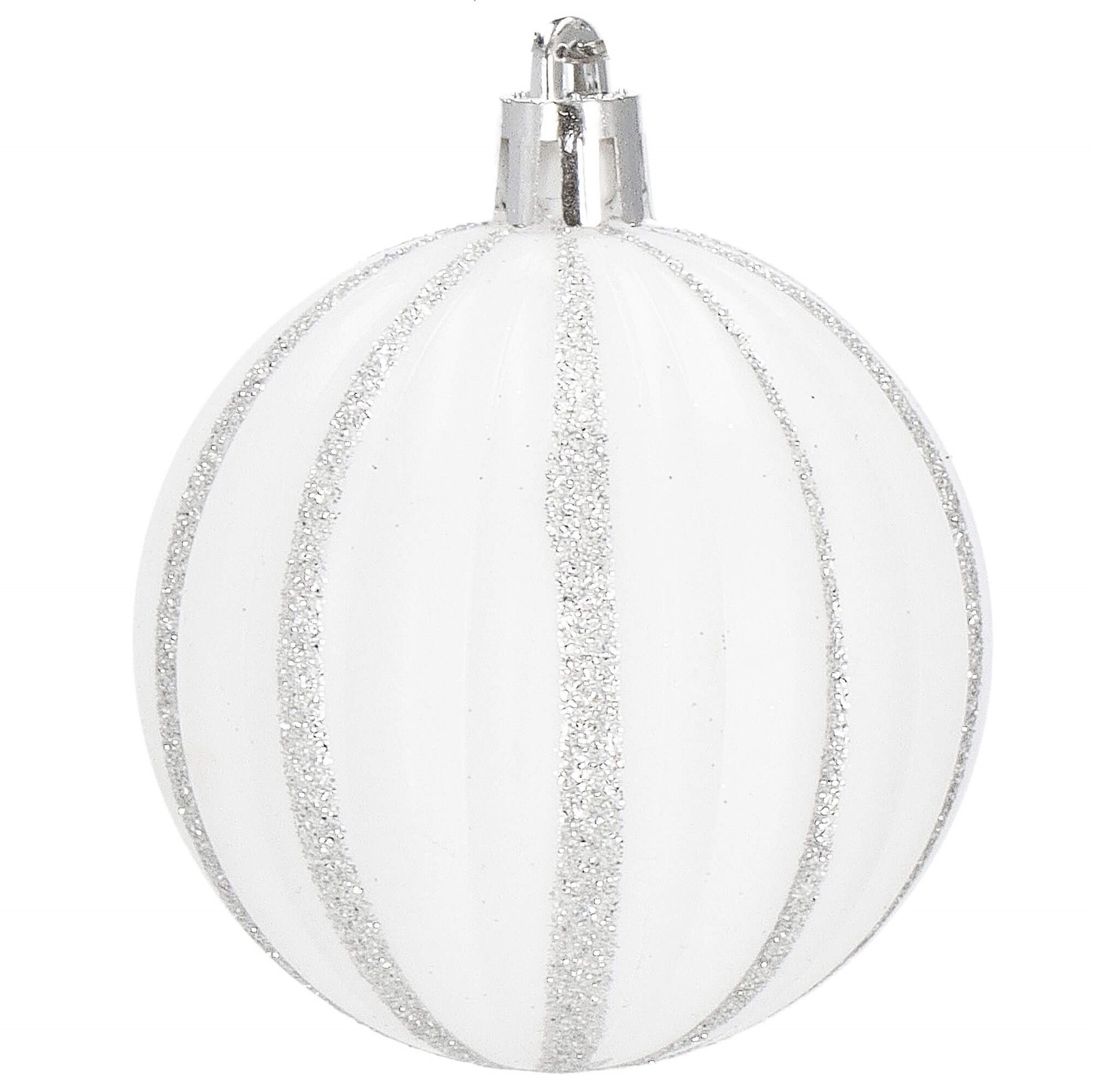 - 2 x teksturowa bombka biała z srebrnym brokatem