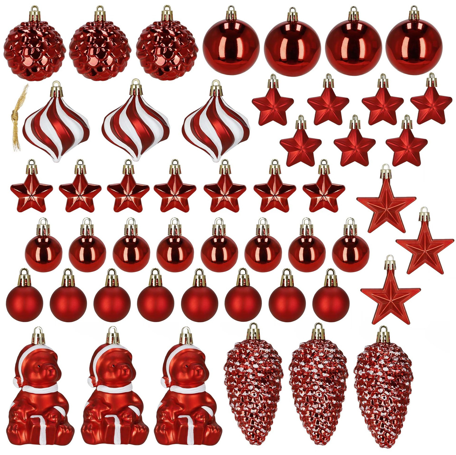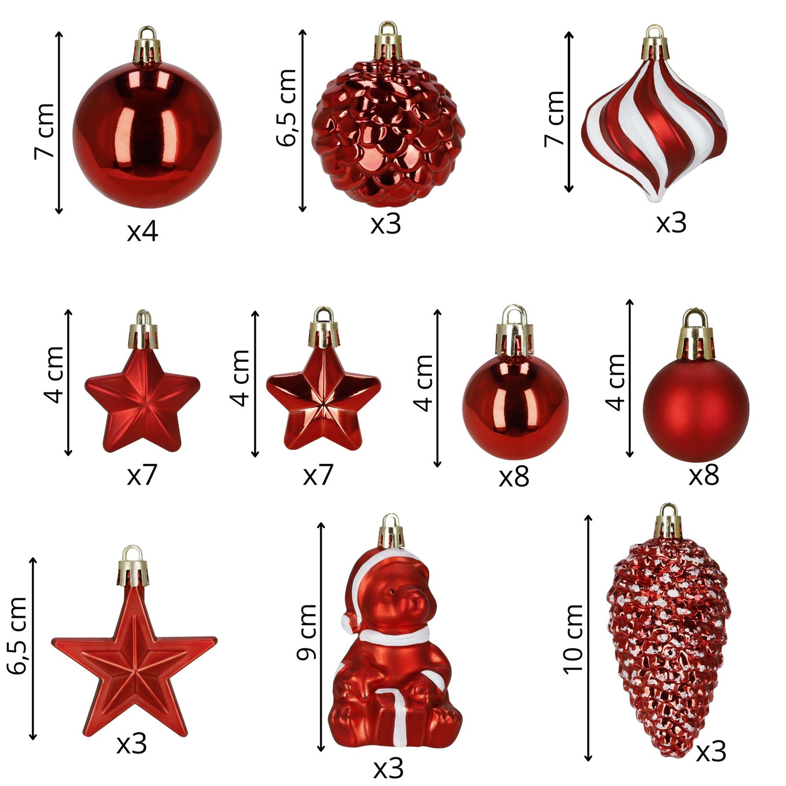 Bombki choinkowe 47 szt. komplet dekoracje świąteczne zawieszki nietłukące, czerwony, złoty, biały