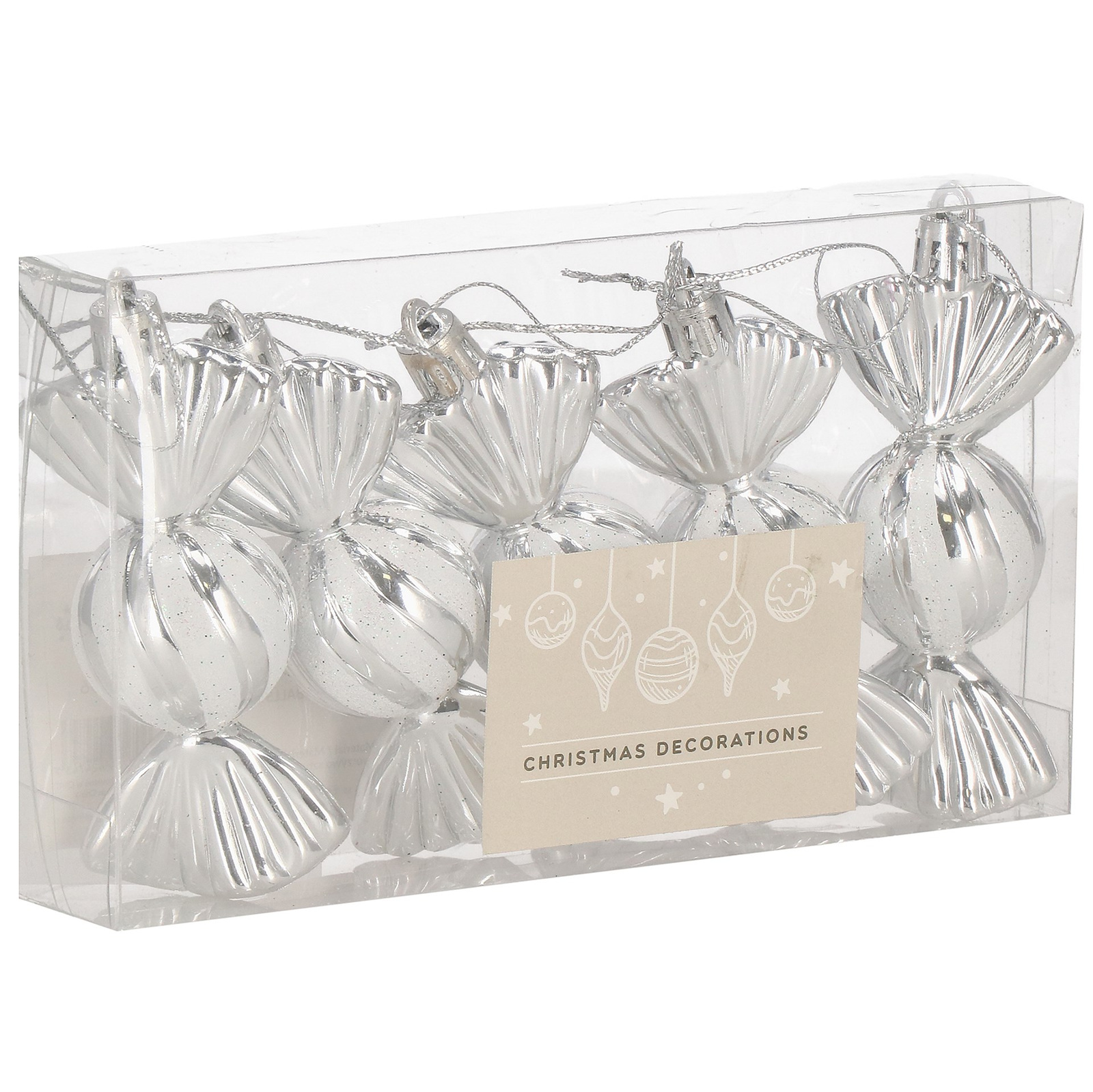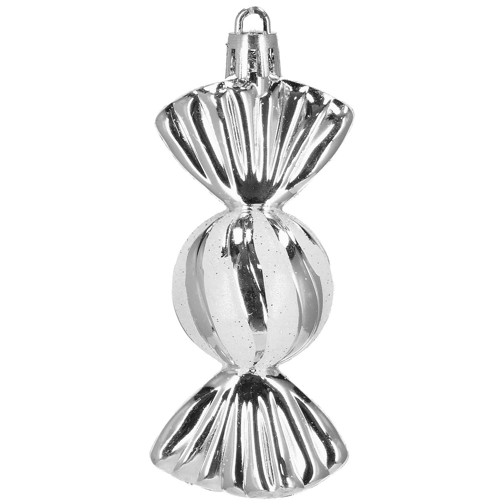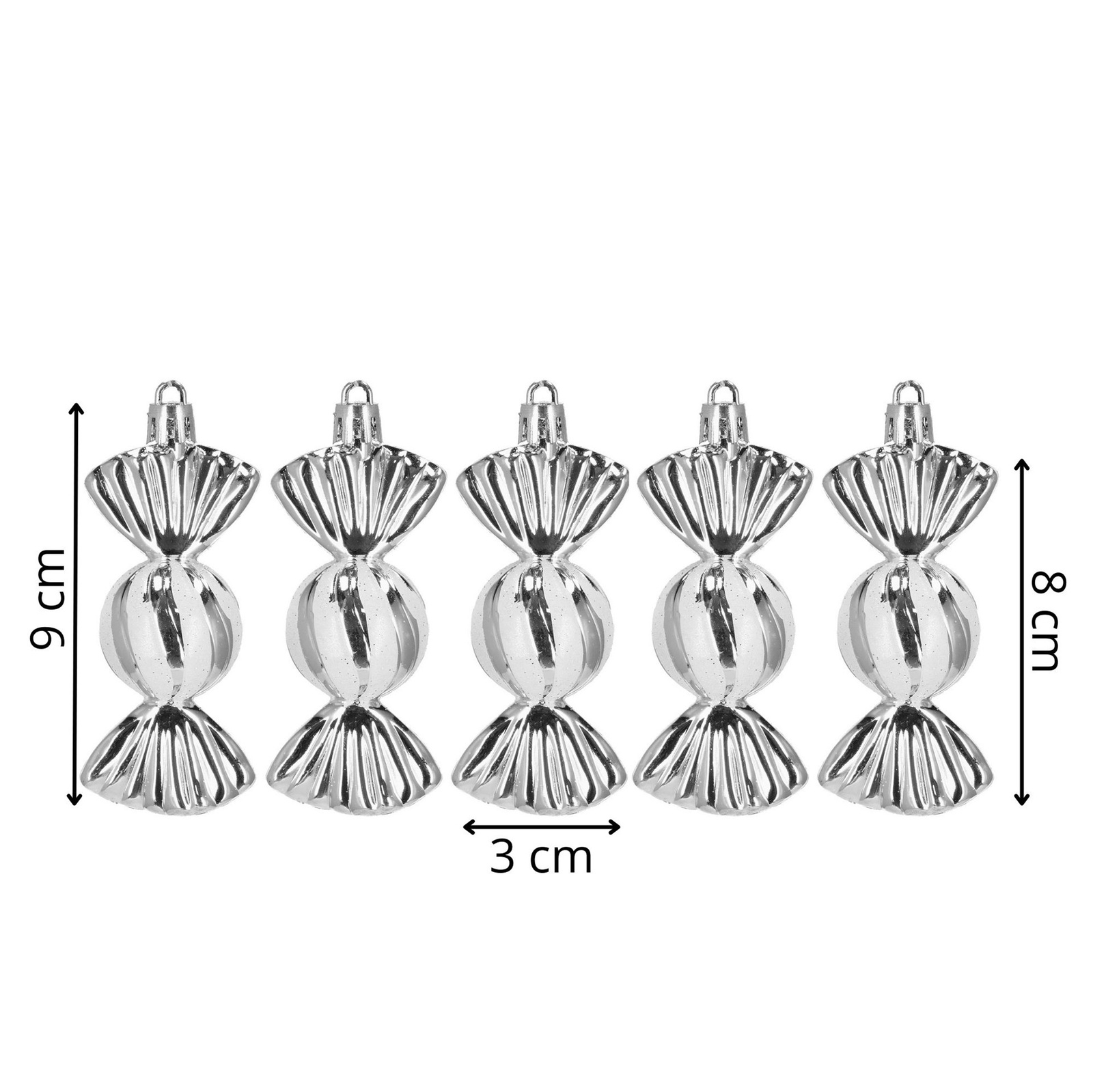 Bombki choinkowe 5 szt. ozdoby świąteczne zestaw cukierki 6 cm srebrne