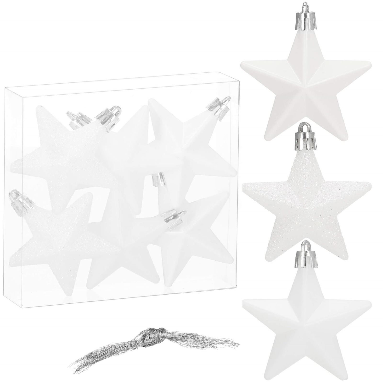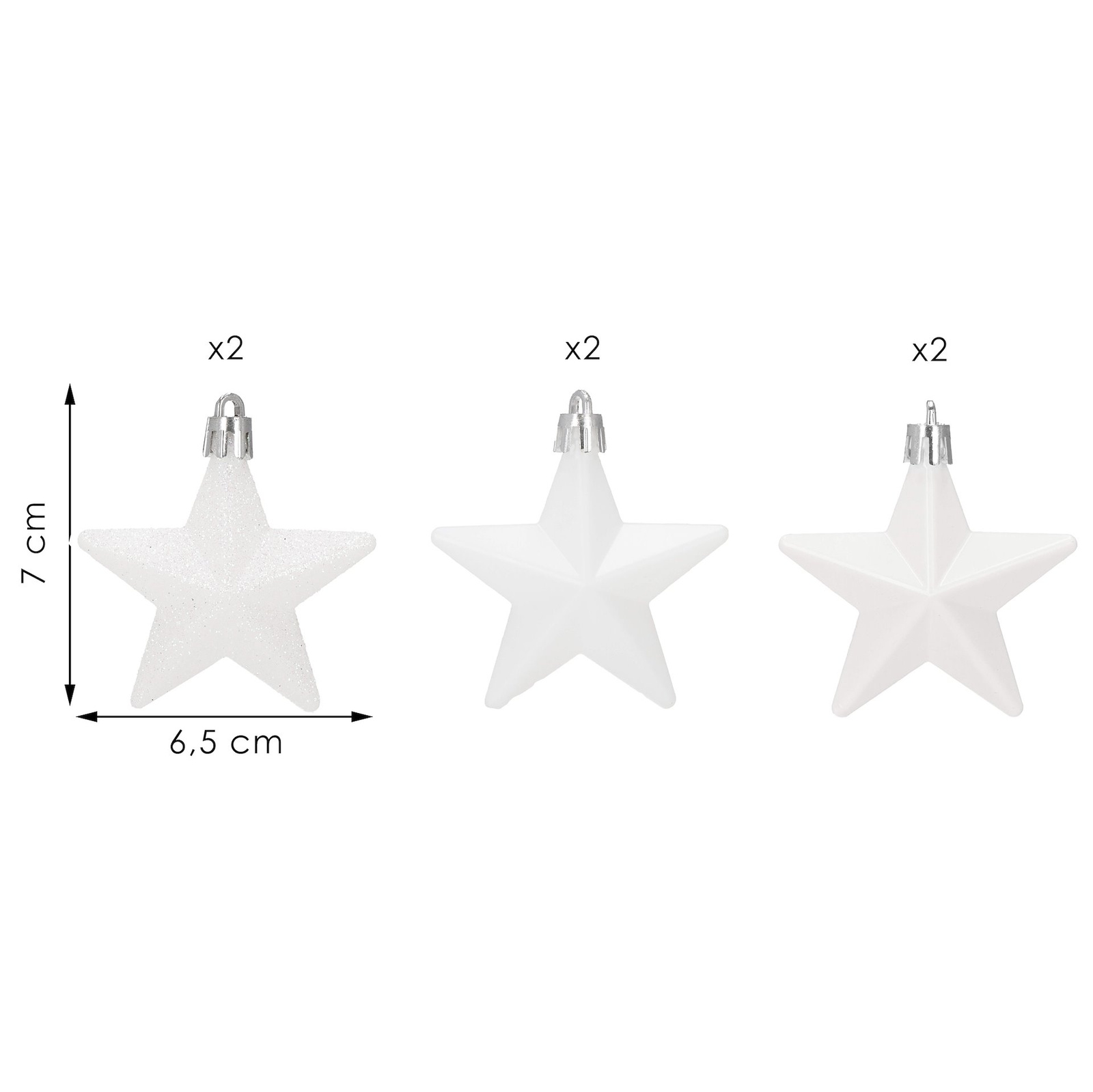 Bombki choinkowe 6 szt. dekoracje, ozdoby świąteczne gwiazdki zestaw białe