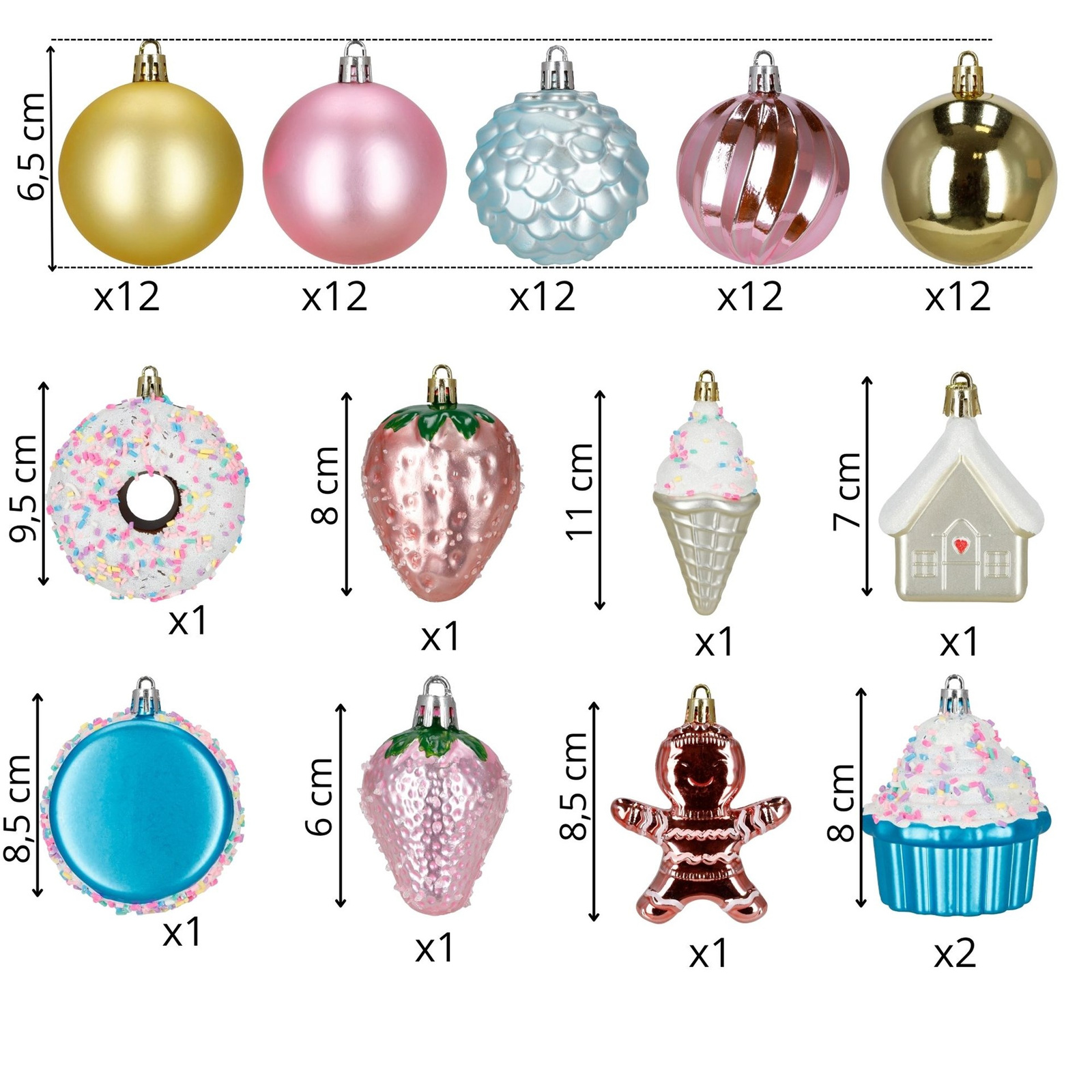 Wielokolorowy zestaw bombek - 69 ozdób pełnych świątecznej kreatywności