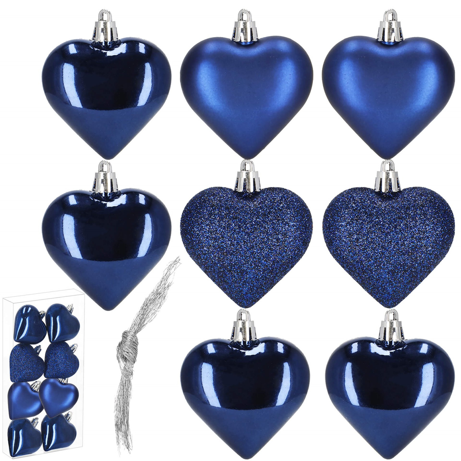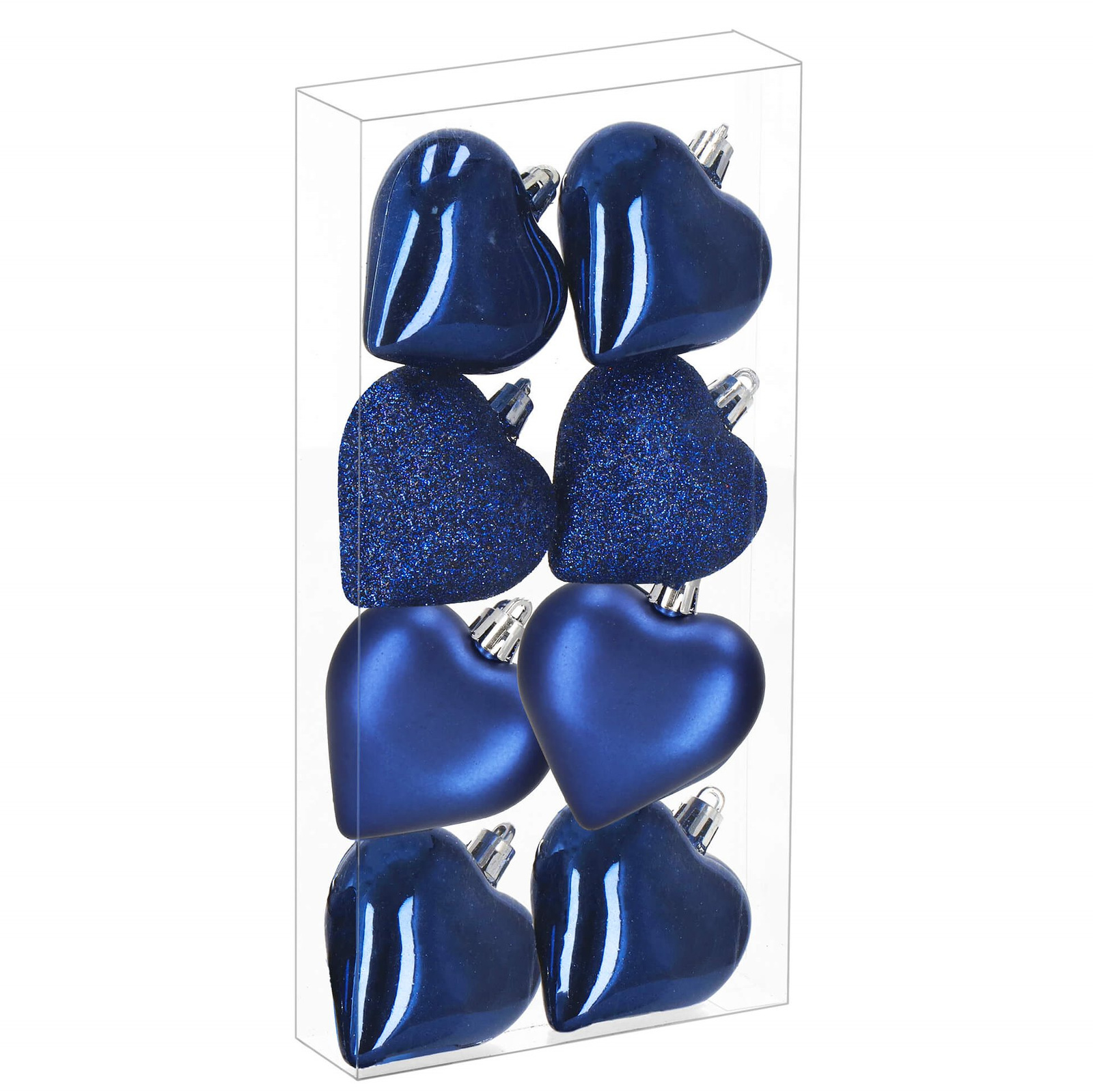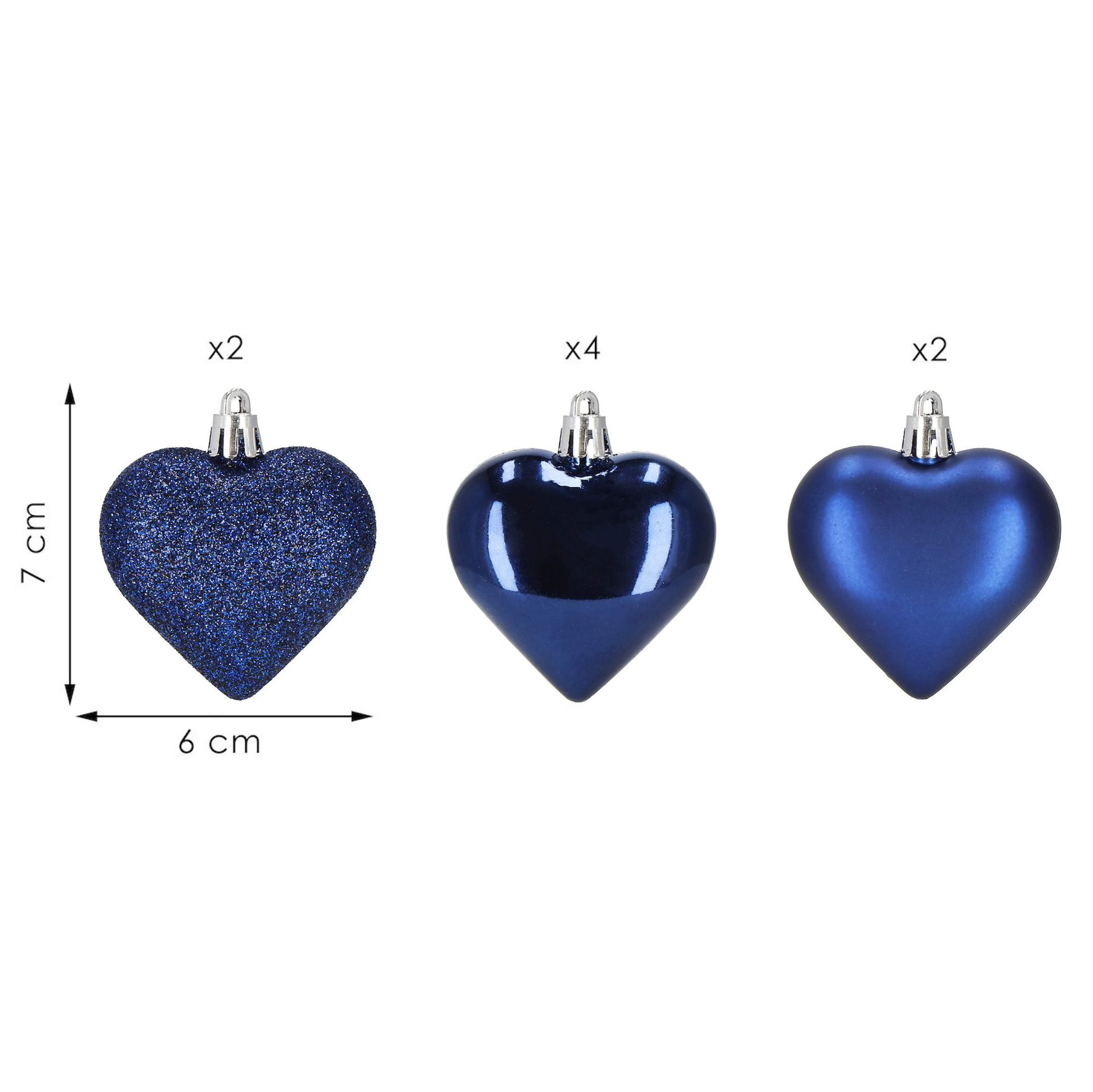 Bombki choinkowe 7 cm dekoracje świąteczne 8 szt. nietłukące serca, granatowe
