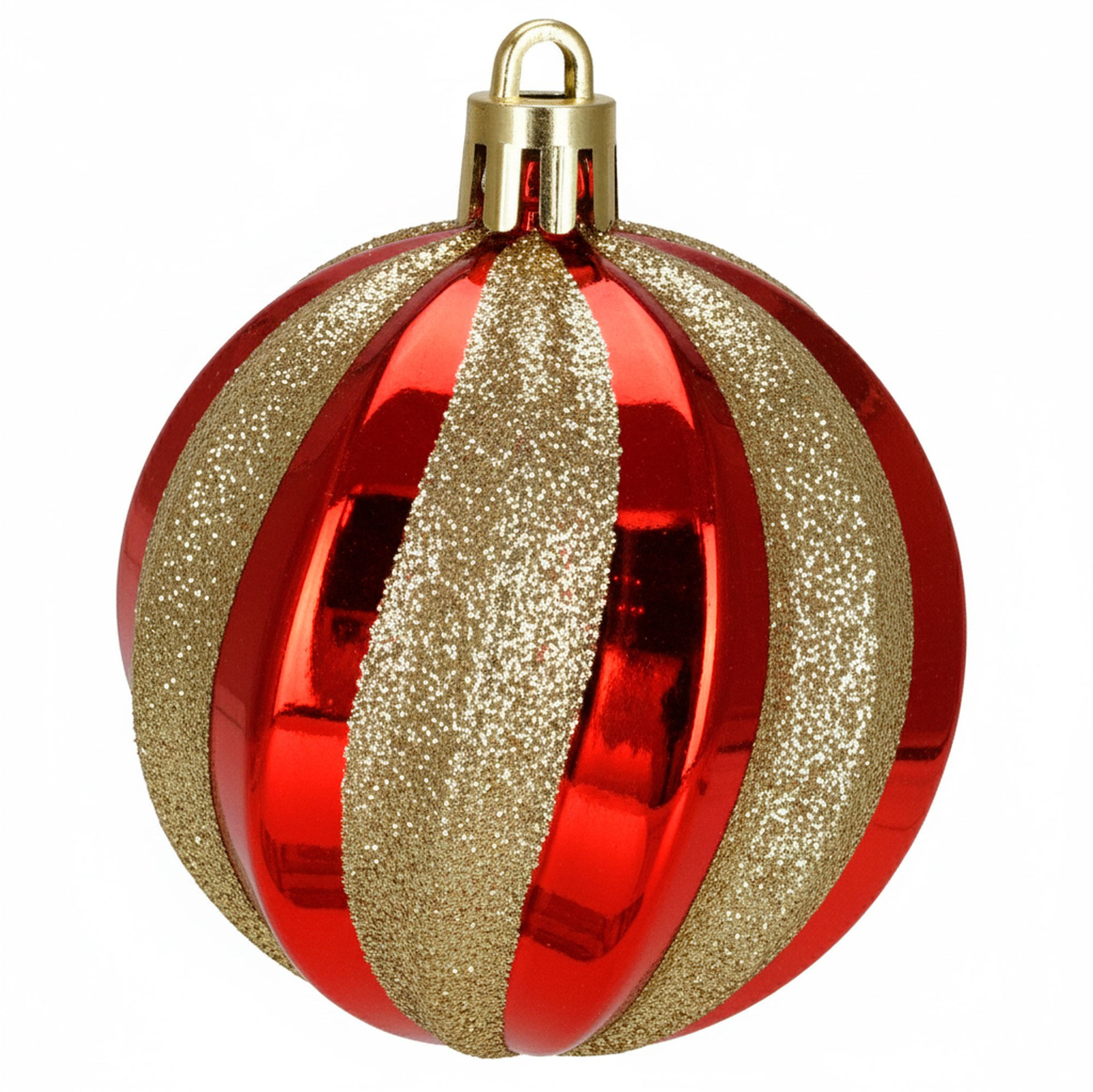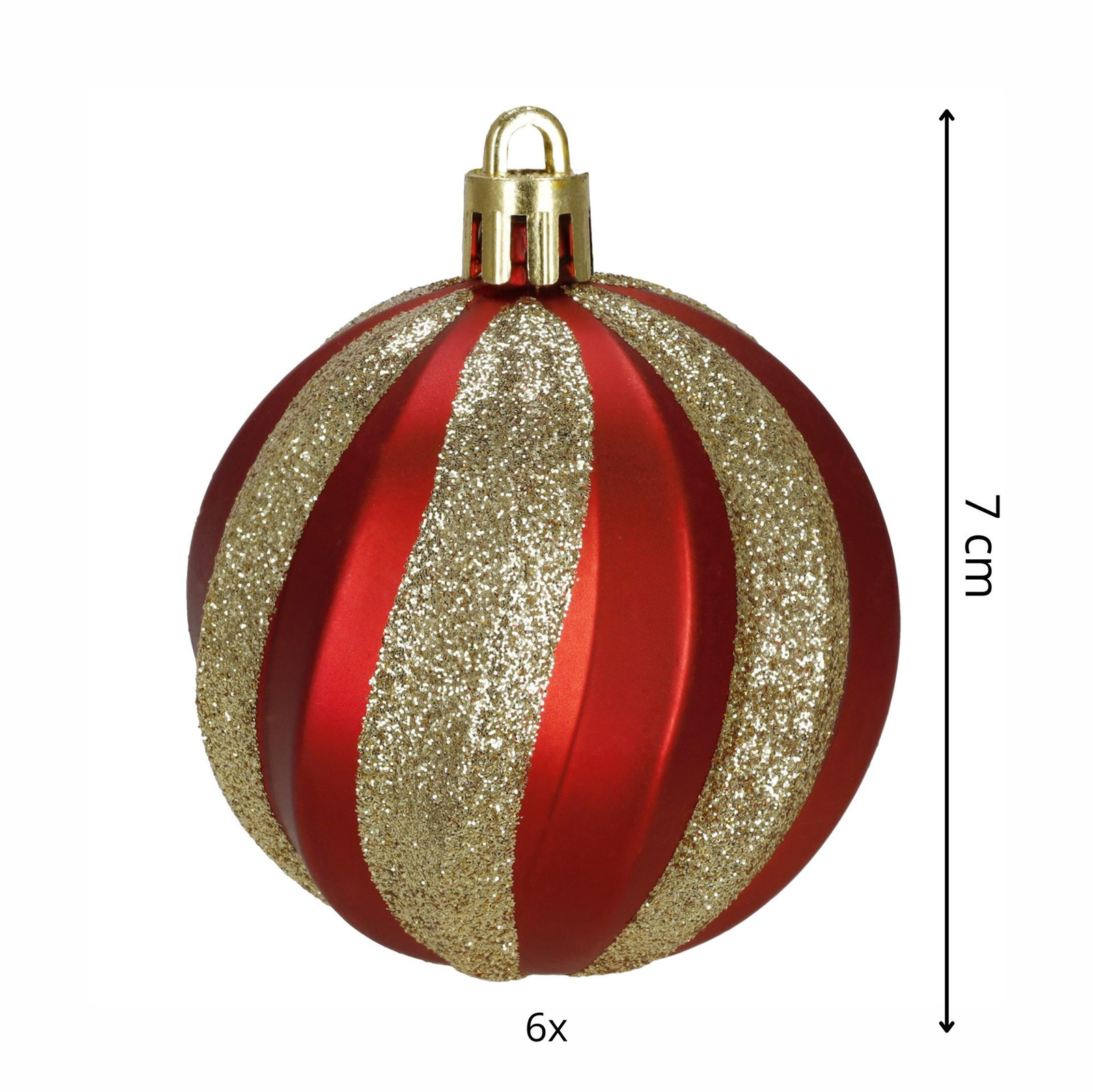 Bombki choinkowe czerwone 6 szt. 7 cm matowe i błyszczące złoty brokat, ze sznureczkami